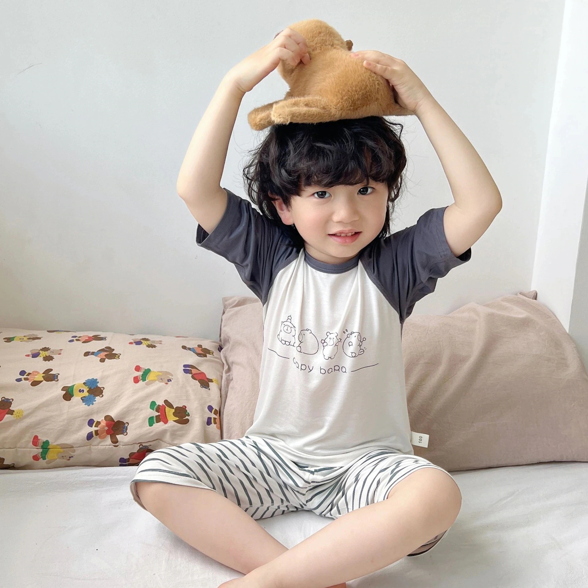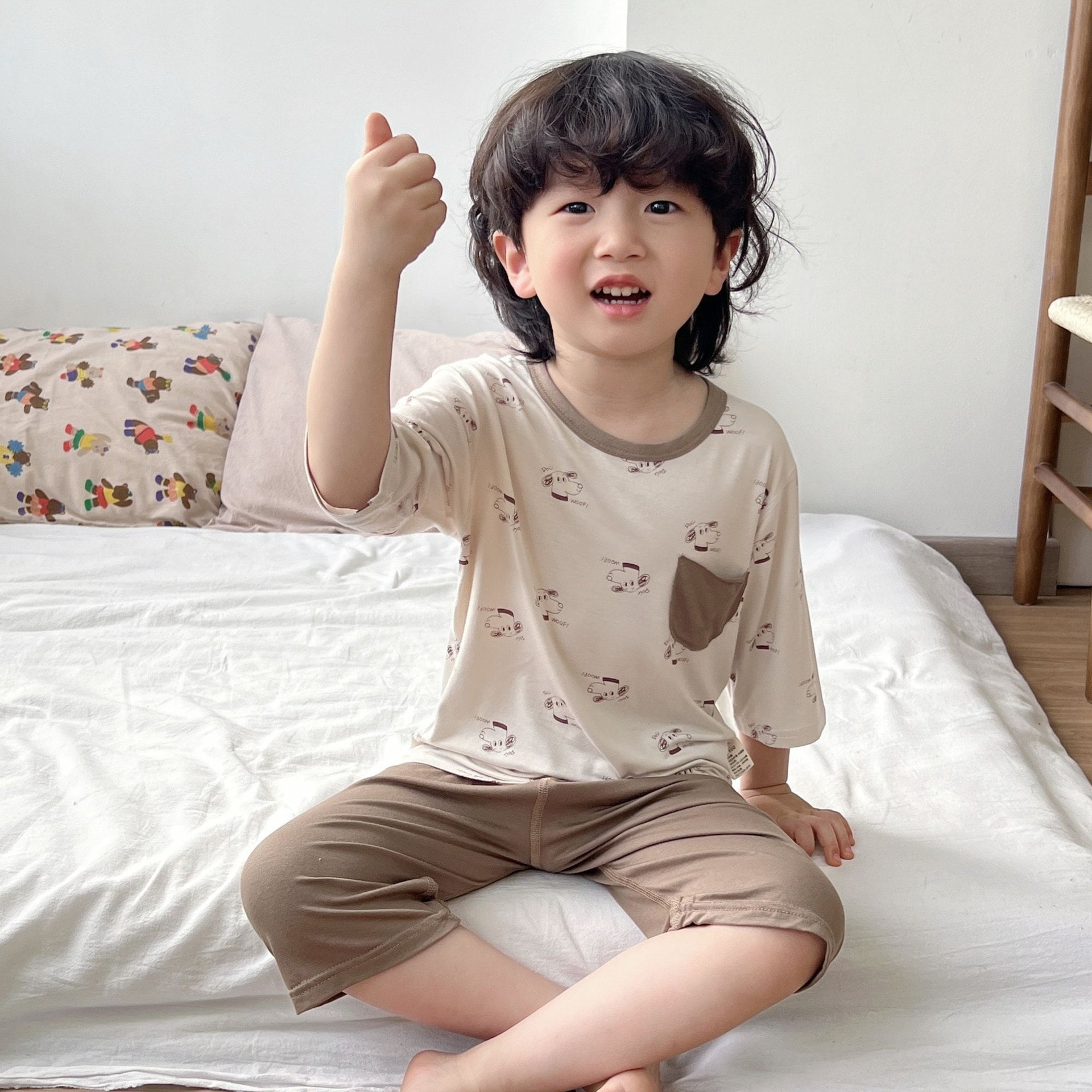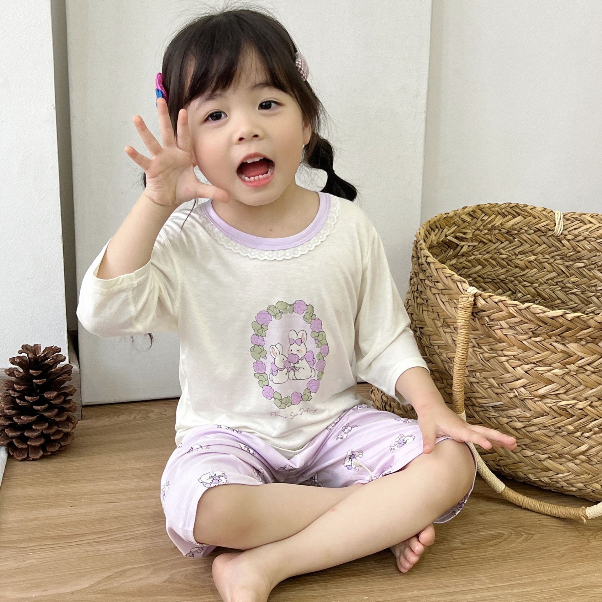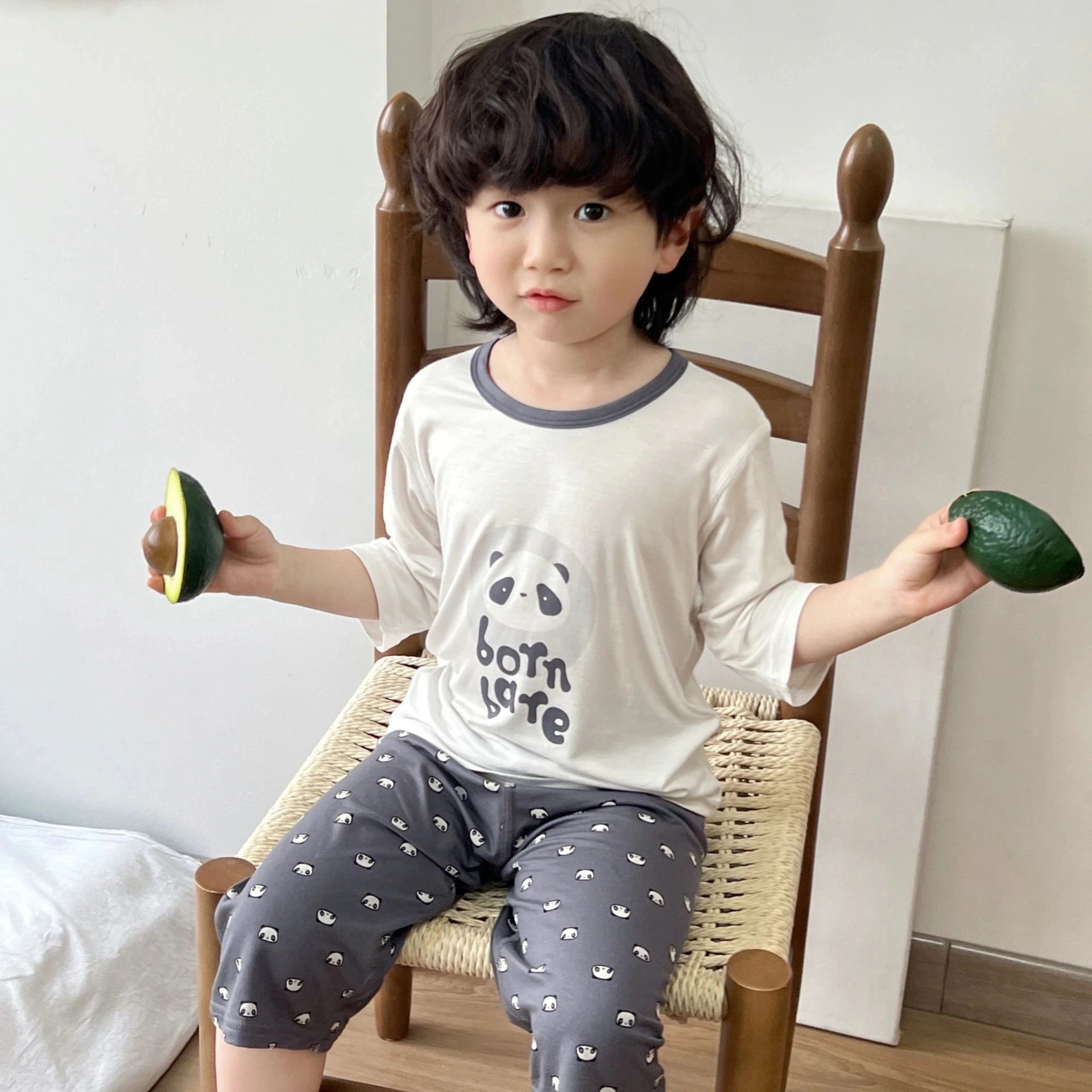 【急速出荷】[キッズパジャマ]パジャマ 夏 夏の子供用ルームウェアセット 7スリーブスーツ