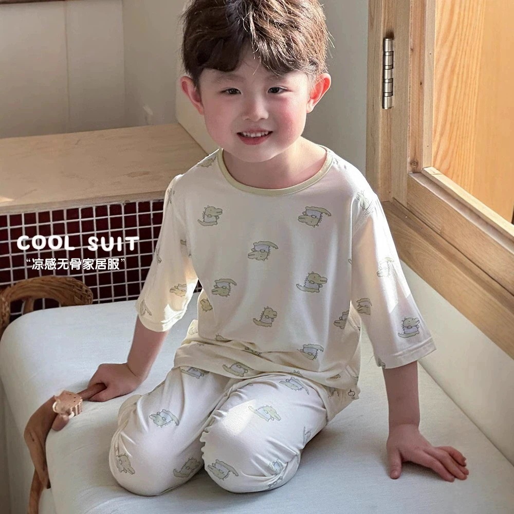 【急速出荷】[キッズパジャマ]パジャマ 夏 子供パジャマ2025新しい夏の7分袖スーツホームウェア