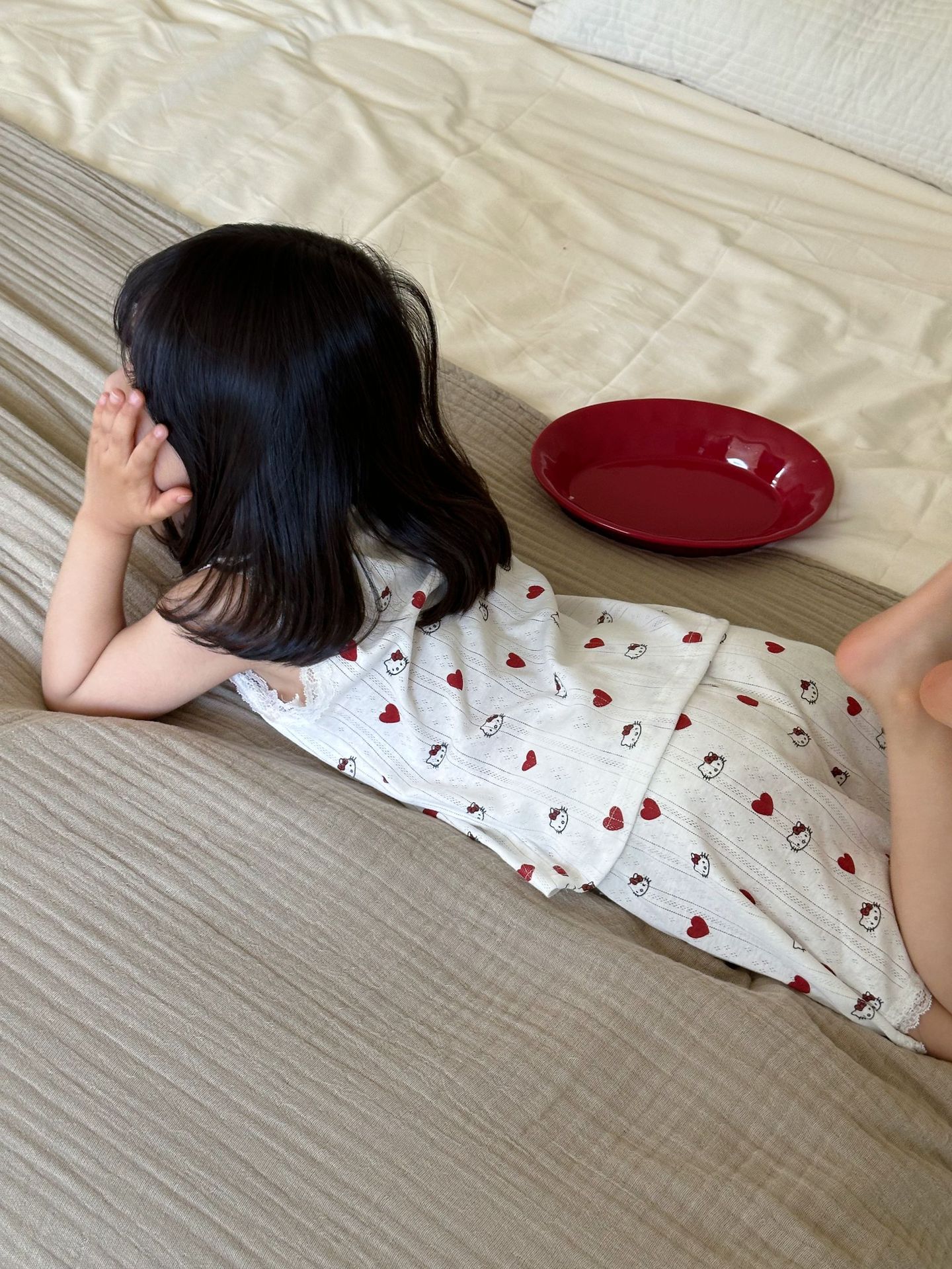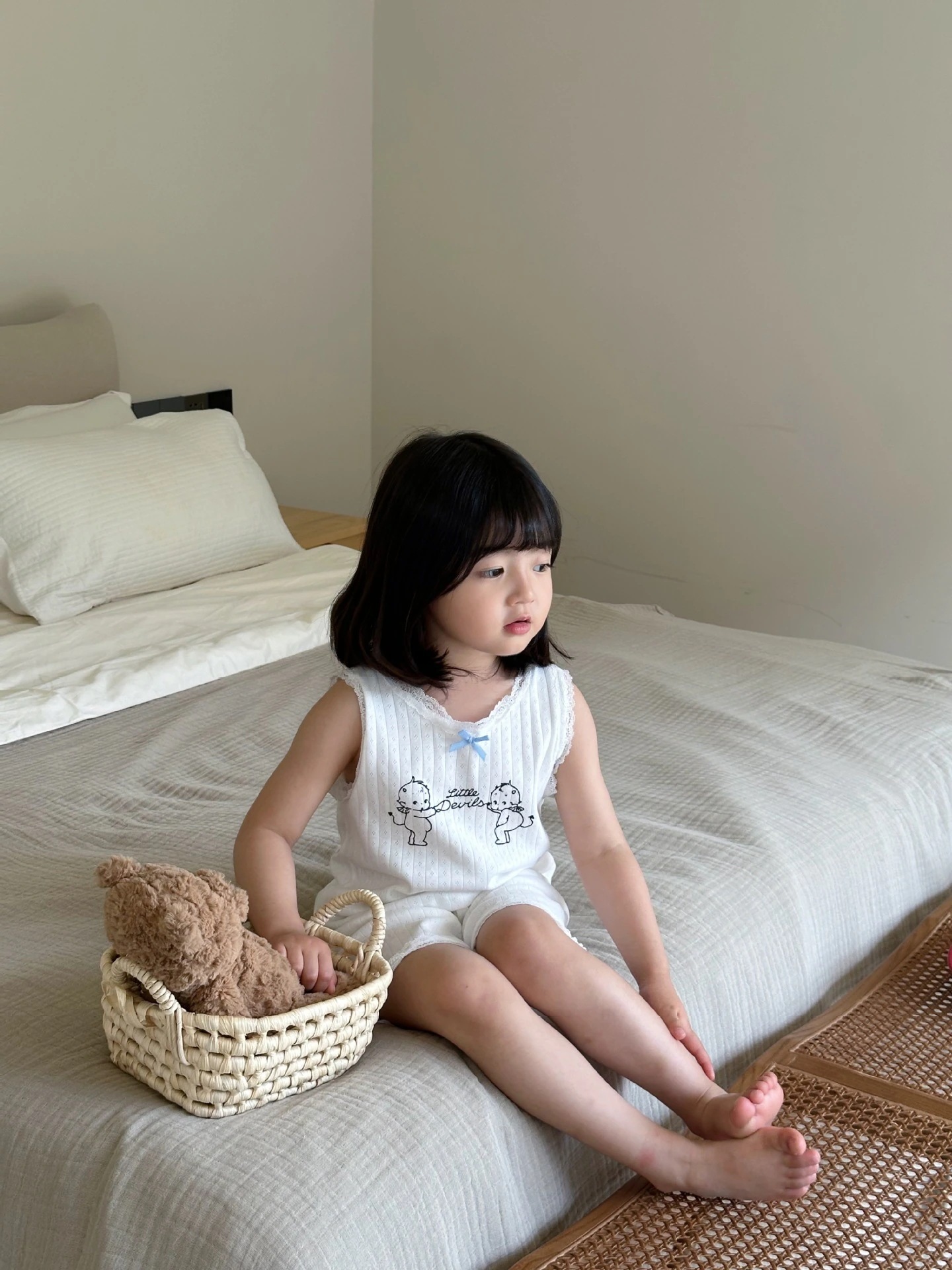 【急速出荷】[キッズパジャマ]パジャマ 夏 夏の女の子のレースのベストホームウェアセット子供カジュアル快適な漫画のパジャマ
