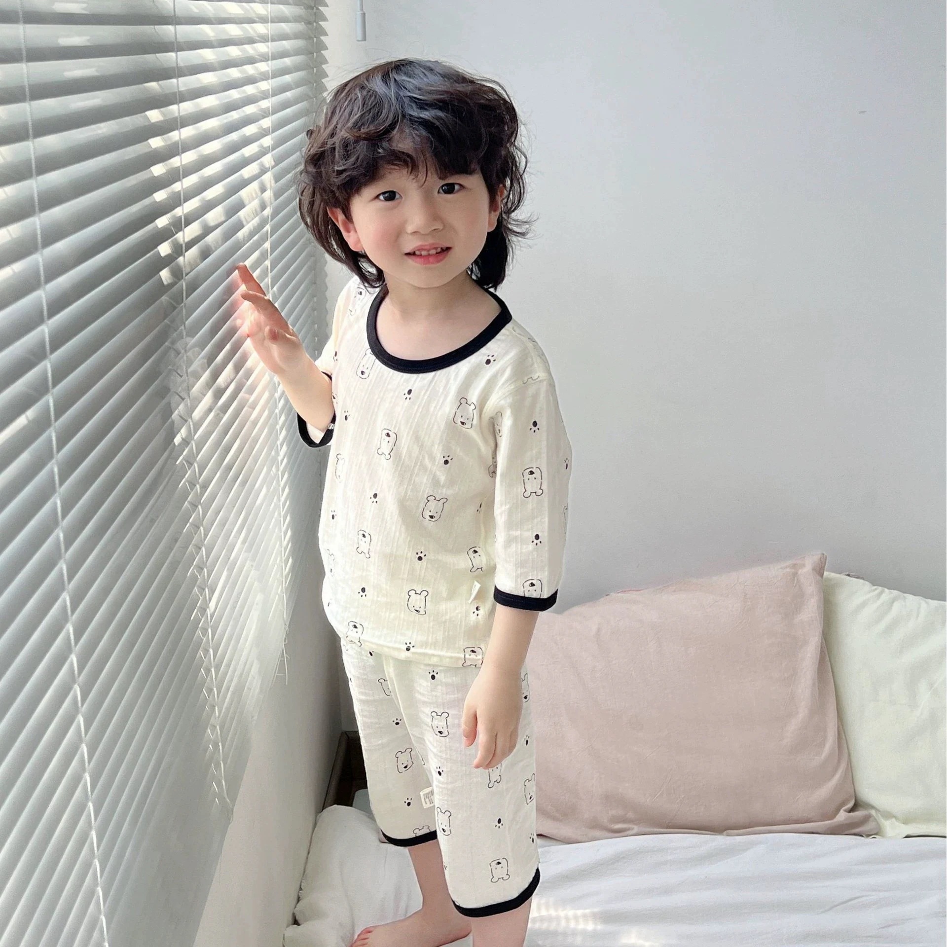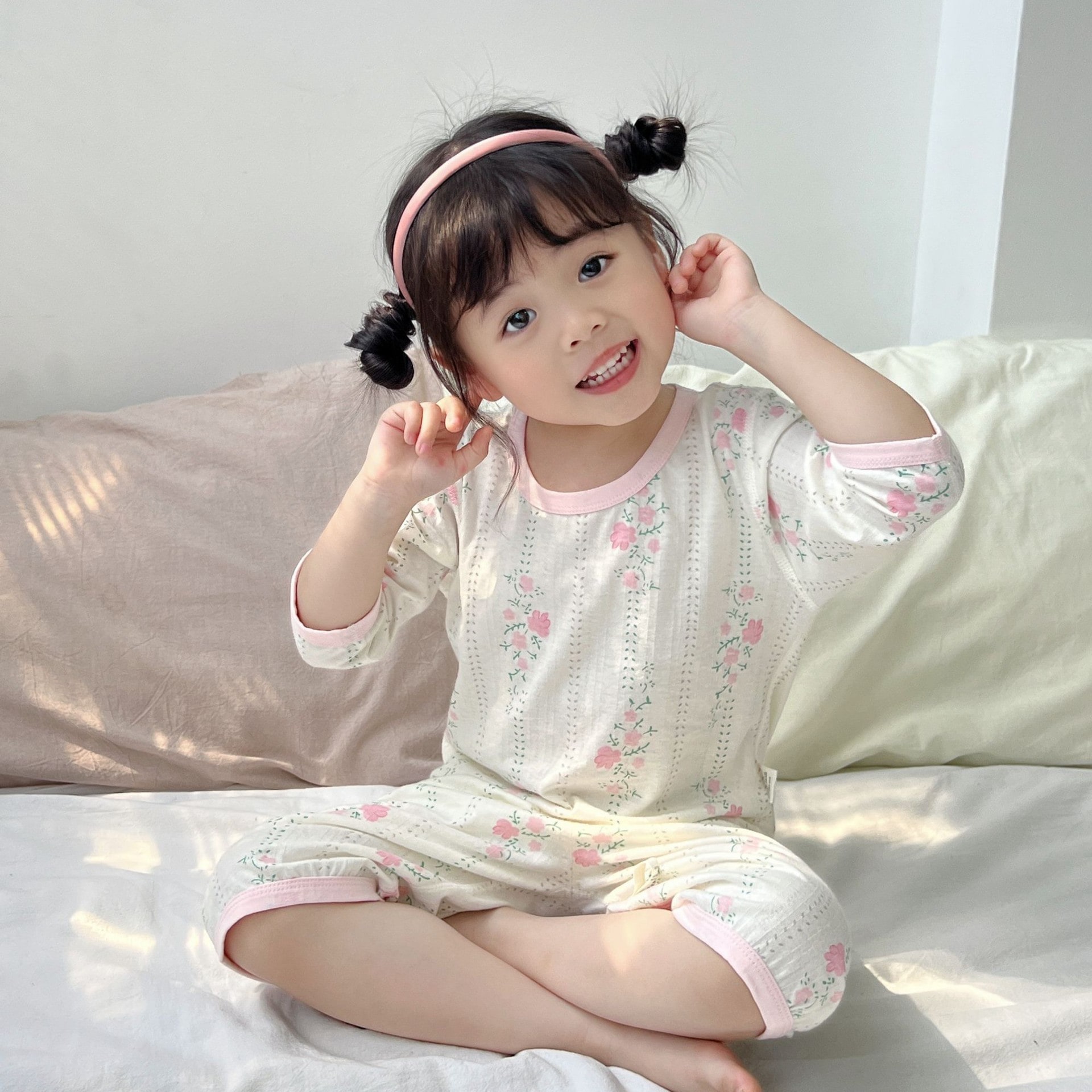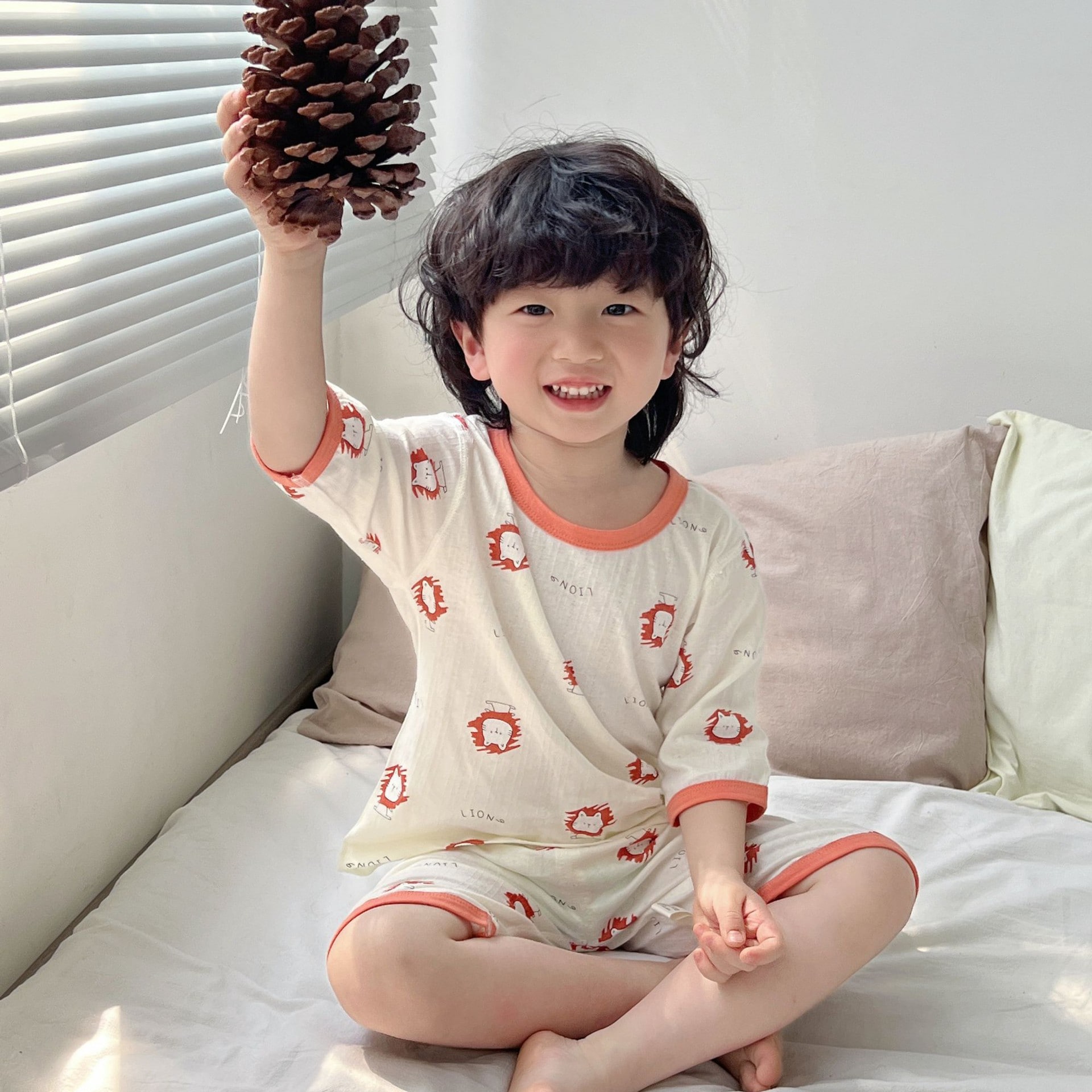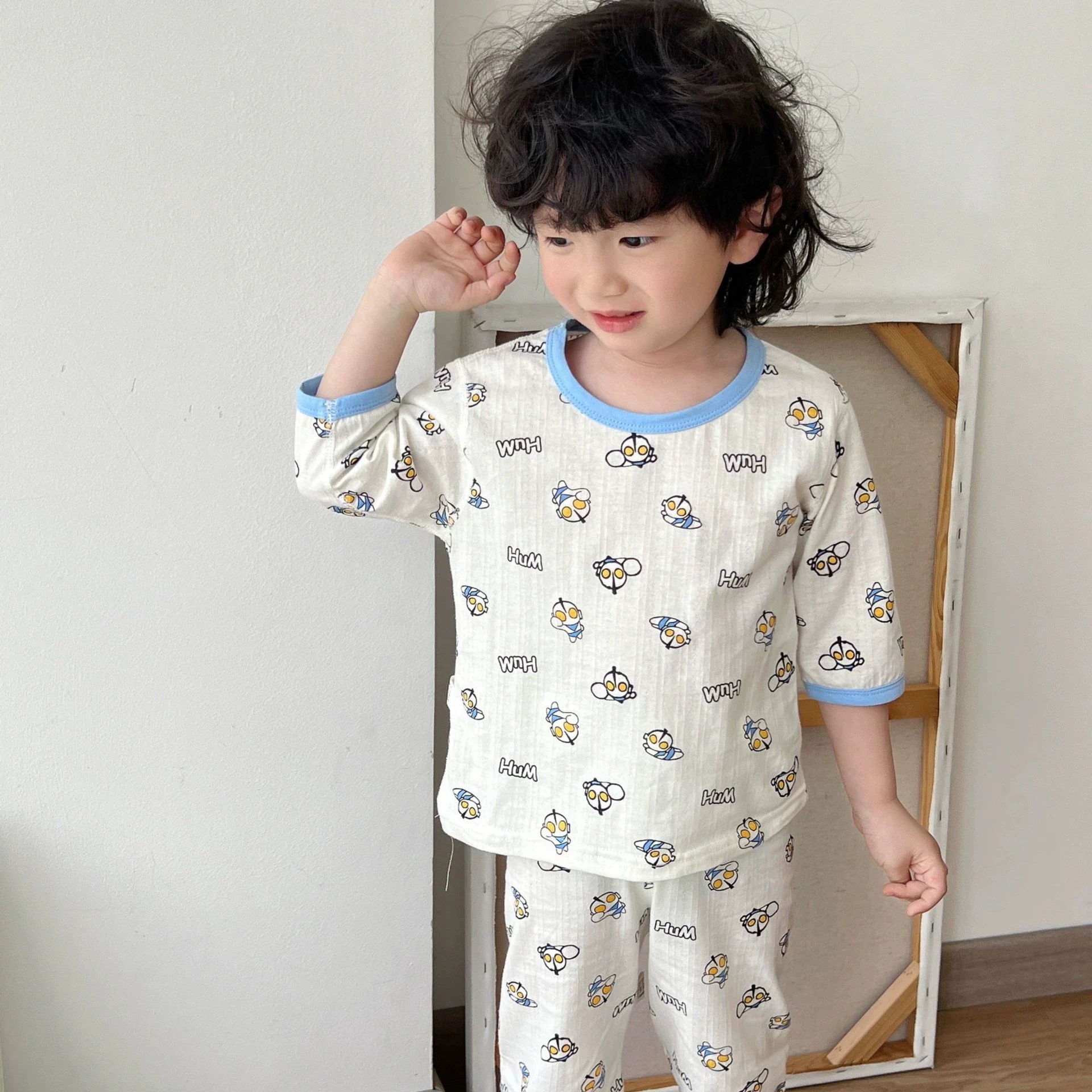 【急速出荷】[キッズパジャマ]パジャマ 夏 夏の薄手の子供用ホームウェア男の子と女の子の7スリーブスーツ