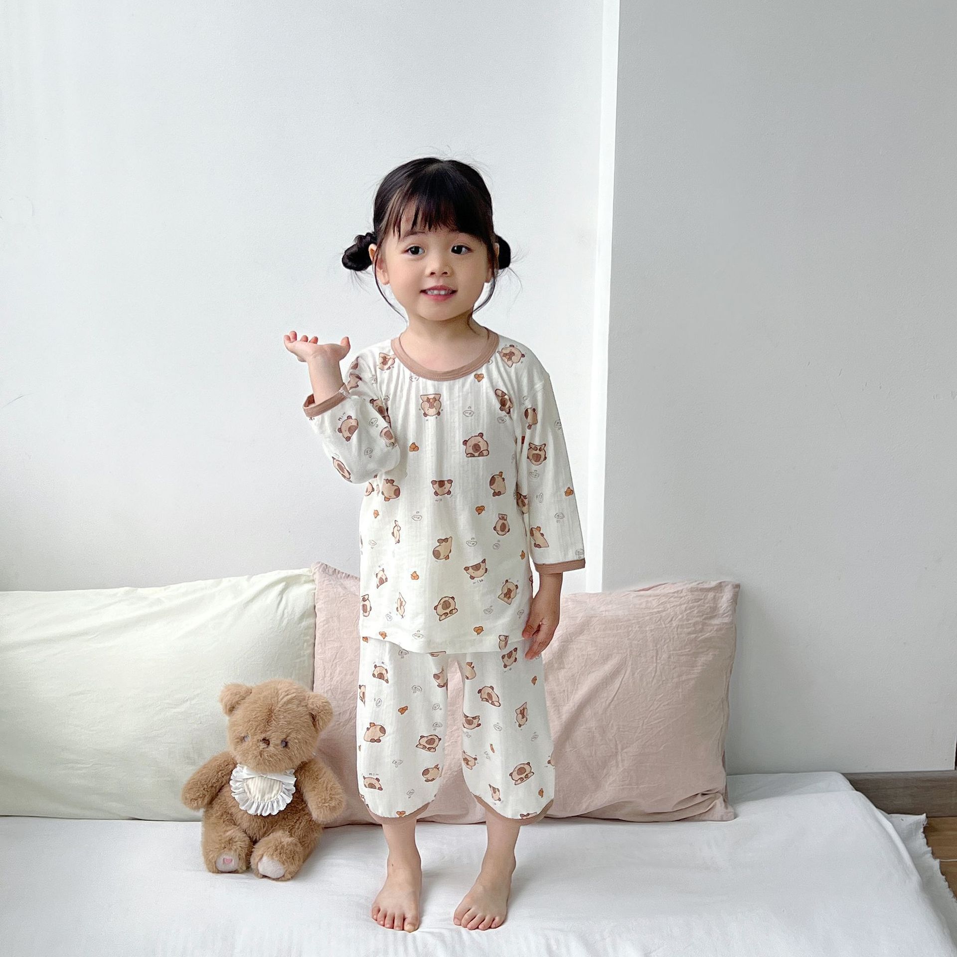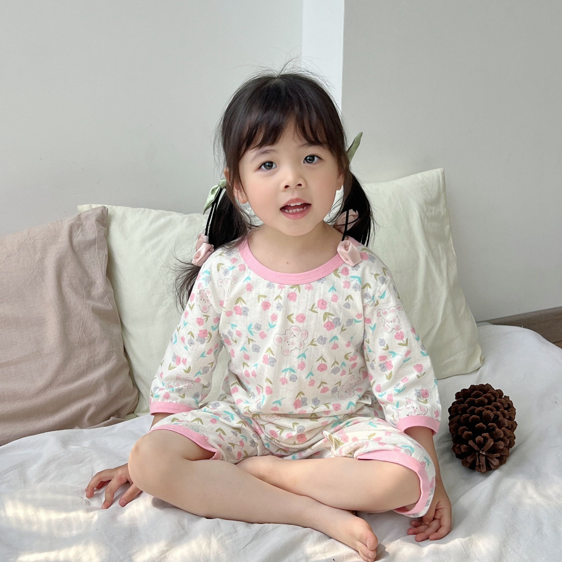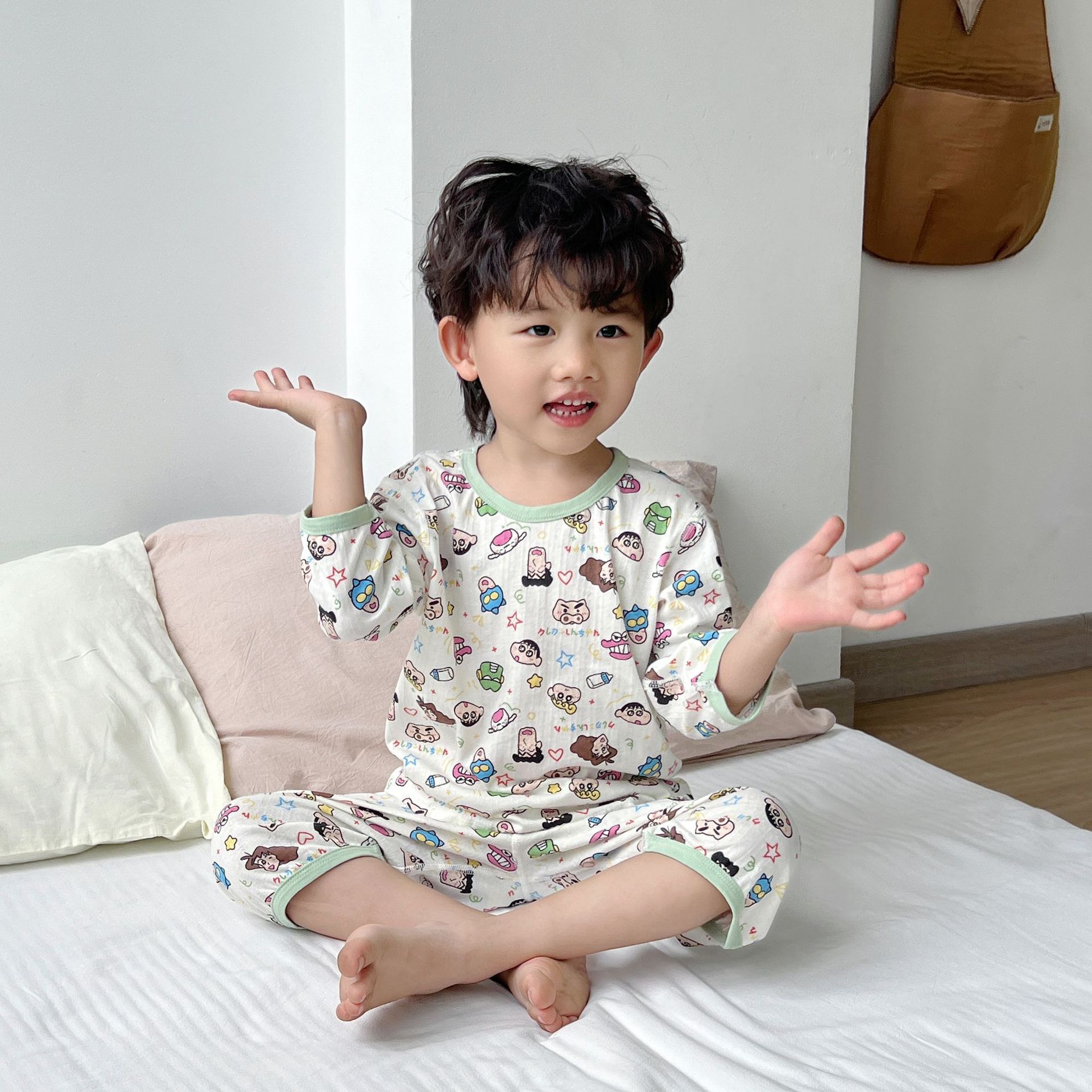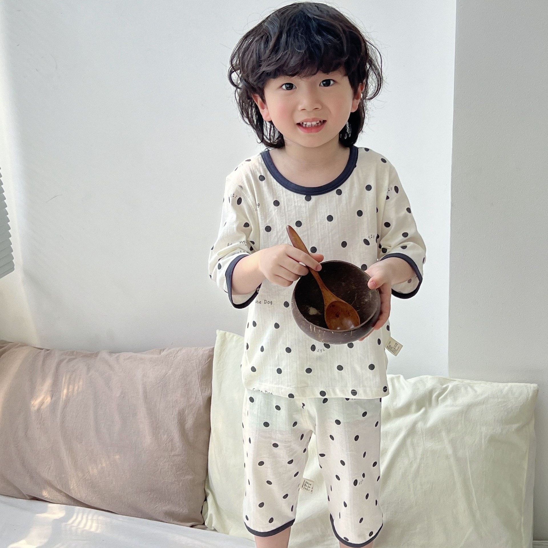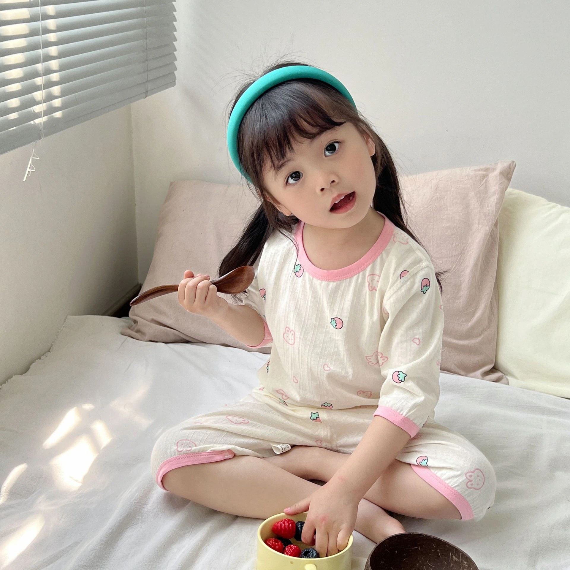 【急速出荷】[キッズパジャマ]パジャマ 夏 夏の薄手の子供用ホームウェア男の子と女の子の7スリーブスーツ
