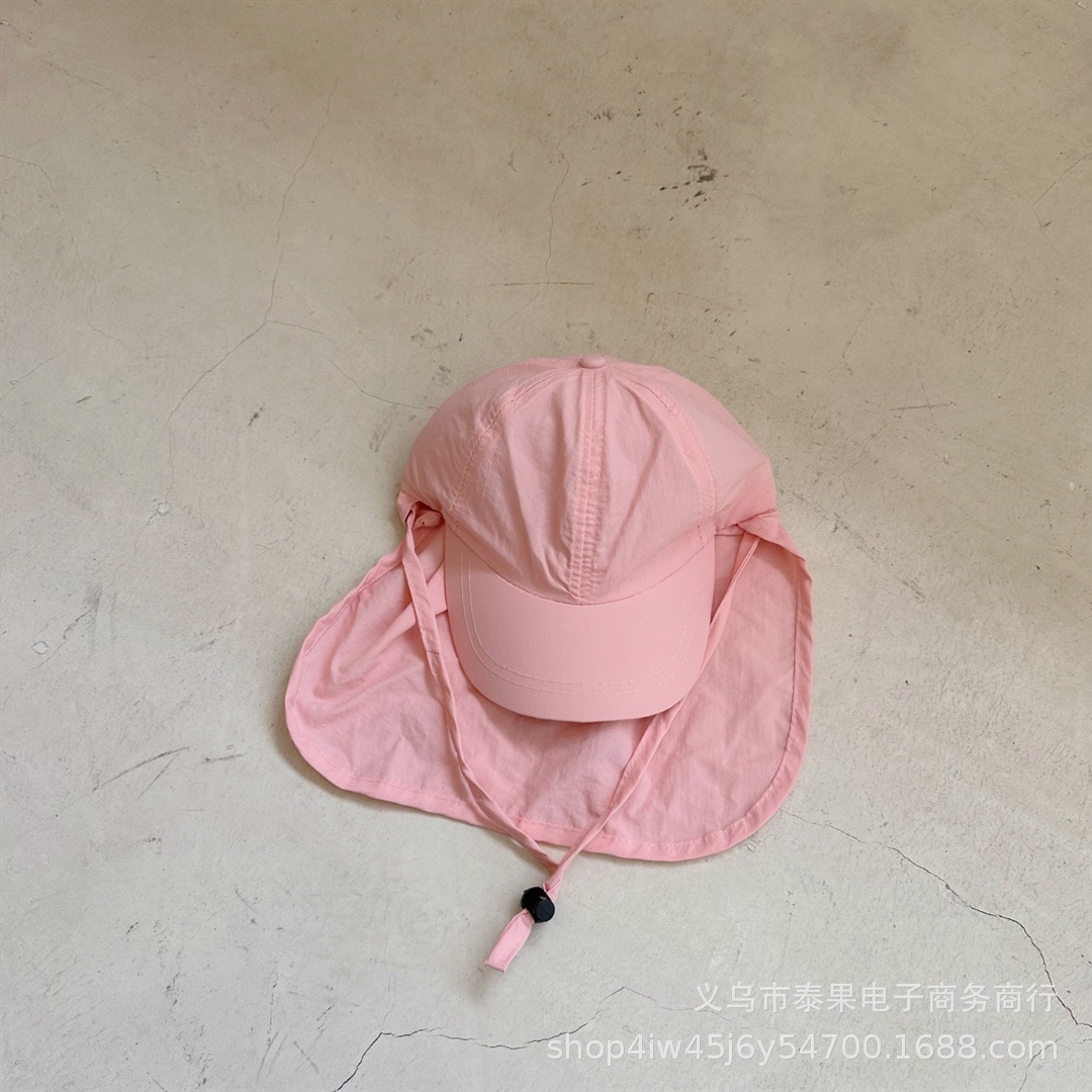 【急速出荷】[キャップ] 子供帽子 UVカット 帽子 夏の子供のシンプルな無地の首の日焼け止め帽子