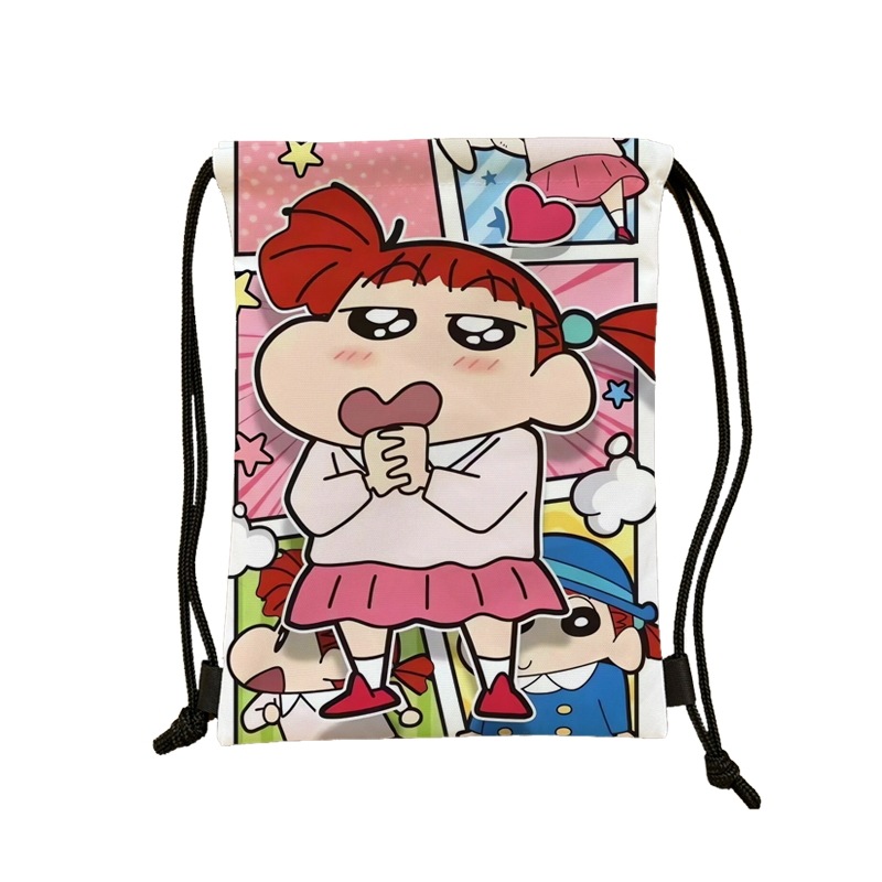 クレヨンしんちゃんins風防水束口引き紐収納袋バスケットボールバッグ耐久性ネット赤まる子ちゃんリュックサック