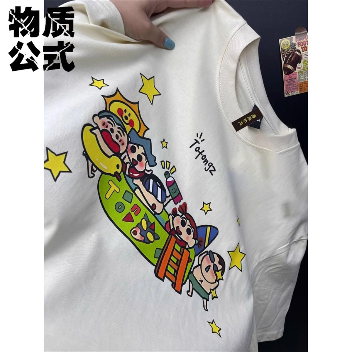 物質公式アメリカ式爆金クレヨンしんちゃん新tシャツ純綿丸襟ゆるいファッションブランド女性上着ins