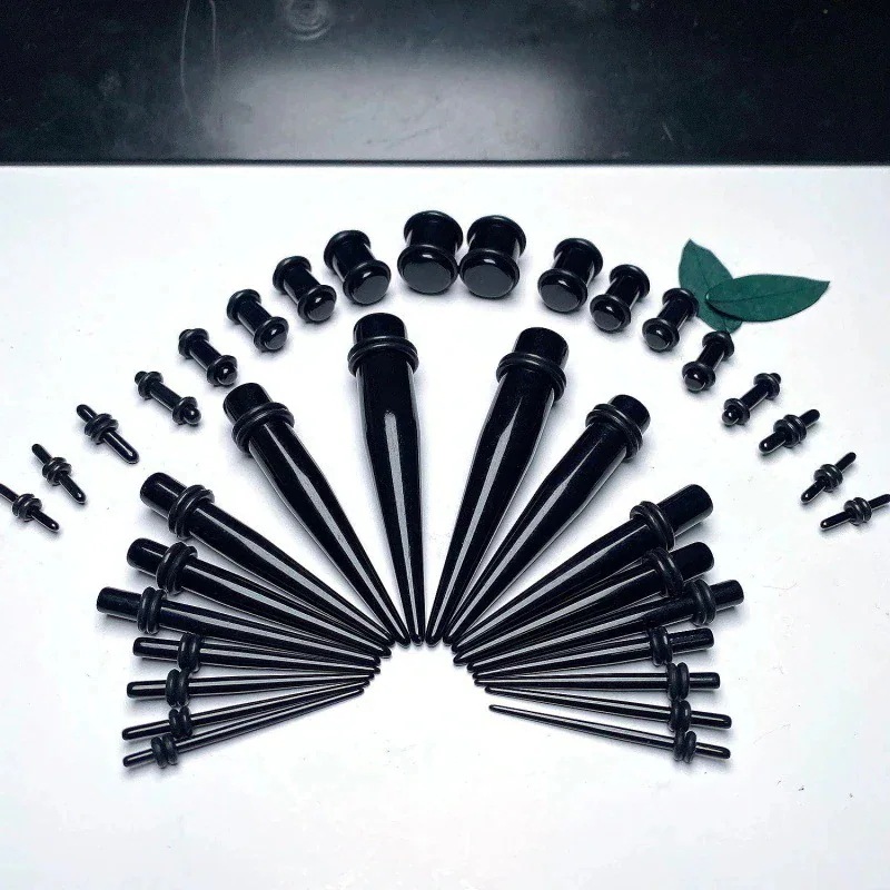 金属アレルギー対応 ボディピアス 14G-00G 9サイズ アクリル樹脂 拡張器 プラグセット 黒色 ブラック インサーションピン テーパー 軽い 細い 太い プラスチック hd431