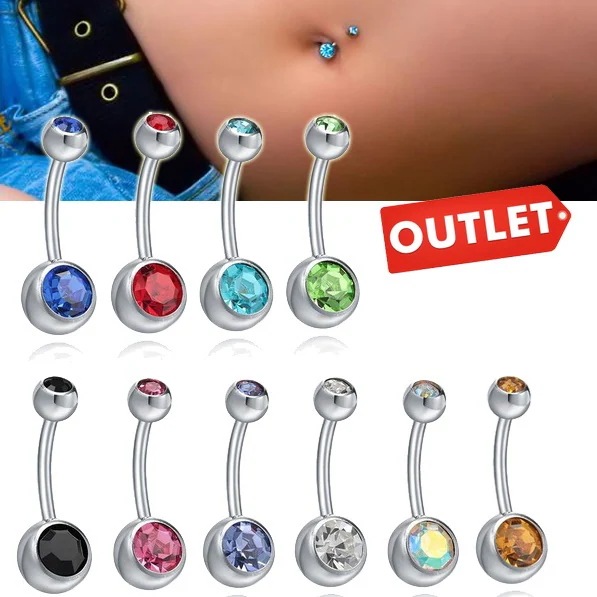 アウトレット 訳あり 全10色 14G 定番 ダブルジュエルバナナバーベル へそピアス 14ゲージ ボディピアス ネイブル 耳 臍 ワケアリ ステンレス 男性 女性 定番 out27