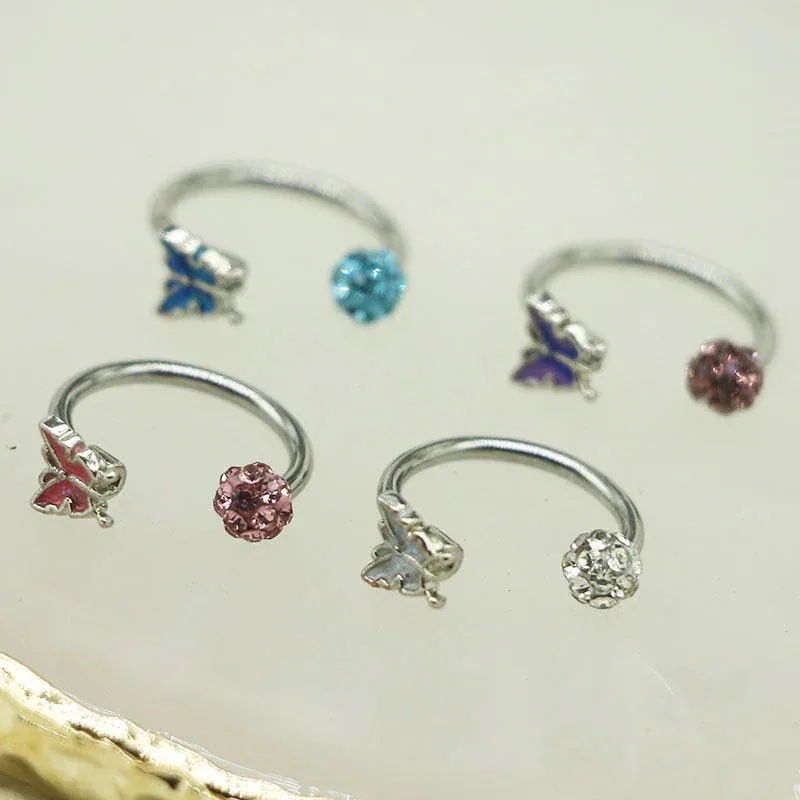 マッドボールバタフライリップリングドリップオイルピアスジュエリーチタン鋼医療用甘い形のグリッター