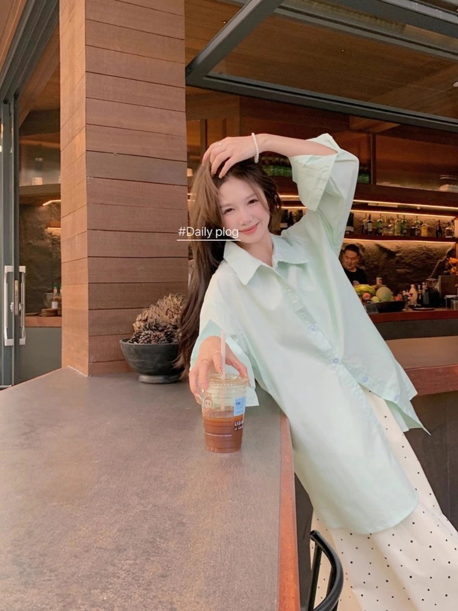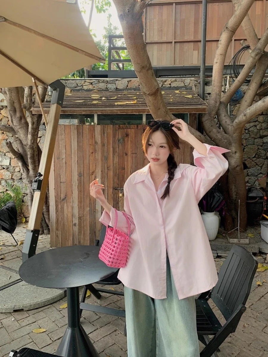 2025春夏 韓国トップス シャツ 長袖 ラウンドネック ゆったり 刺繍薄手 丈長め 紫外線冷房対策 カット 甘め おしゃれ透け感 シルエットカジュアルかわいい韓国ファッション レディースサイズお出か