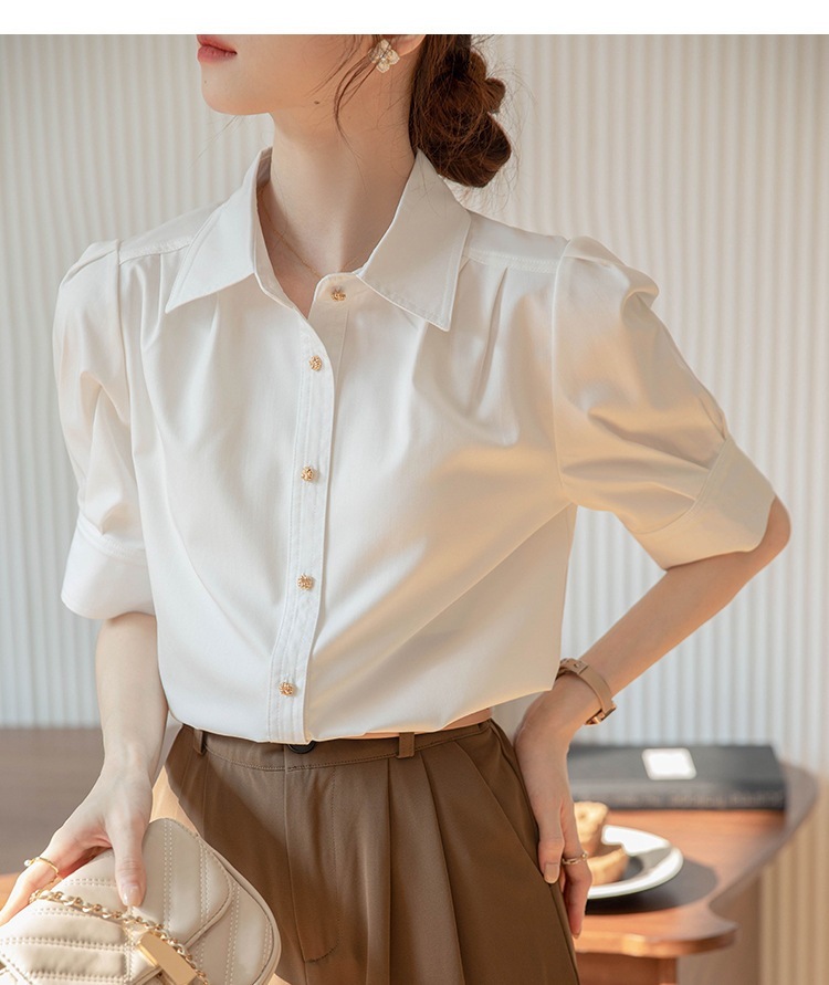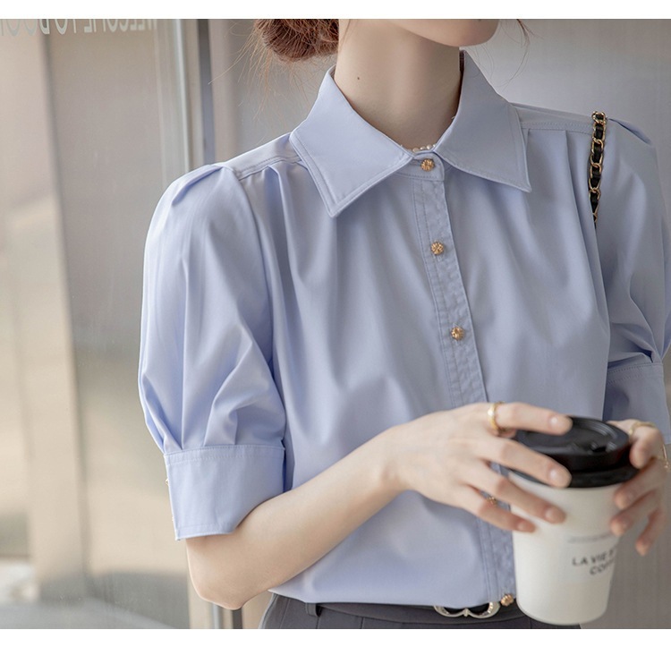 ブラウス 夏 新作 通勤 シャツ 半袖プロポロカラーブラウス