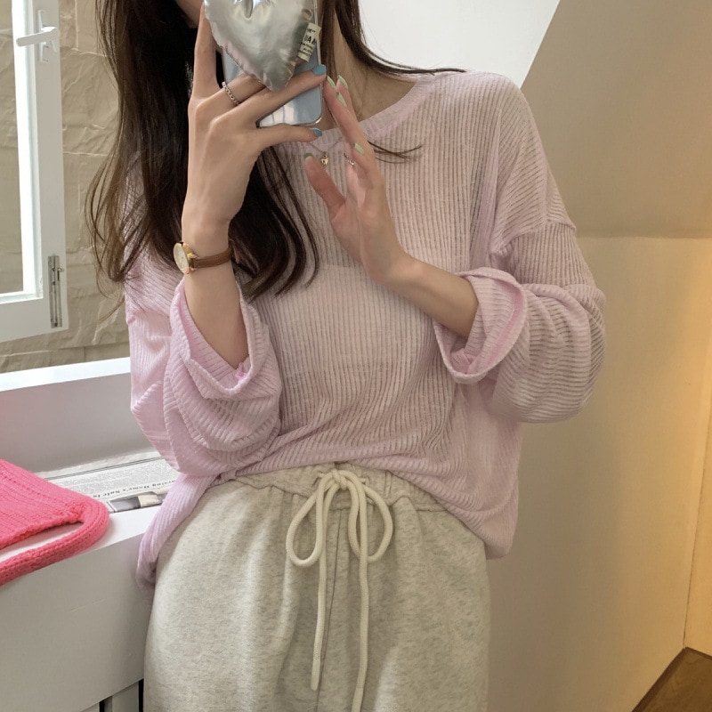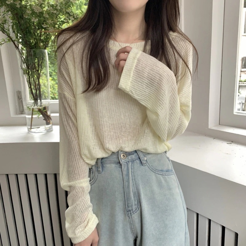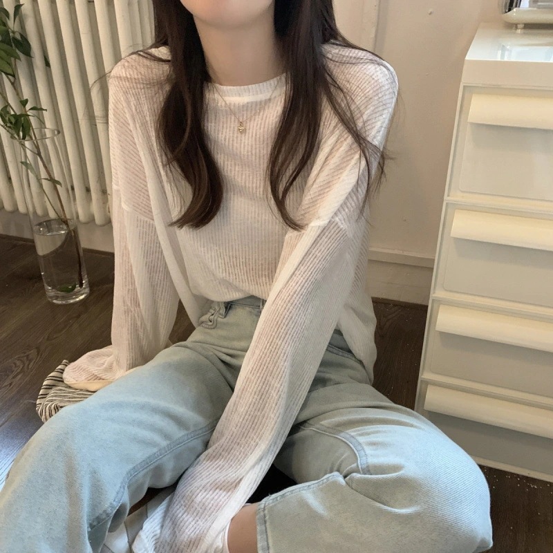 日焼け止めシャツ 長袖 薄い部分 シンプル ゆったり Tシャツ 夏 微透明 底上げ シャツ トップス