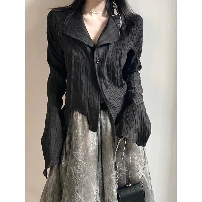 デザインブラウス 夏 2025新デザインセンス小人数長袖シャツフェミニンbfレトロ着やせインナートップスファッションins