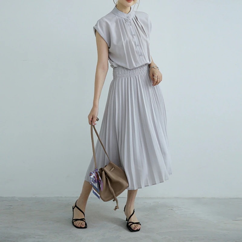 ワンピース レディース フレンチスリーブ ノースリーブ ノースリー 半袖 夏 きれいめ 着丈100 着丈105 ロング 丈 コットン 綿 aライン ウエストシャーリング ラウンドネック 体形カバー 膝