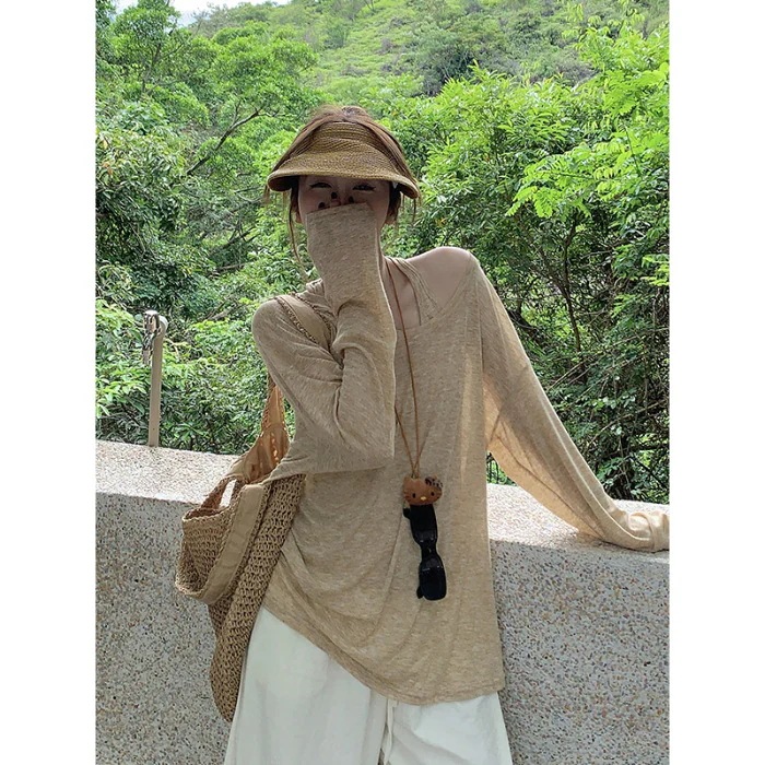 長袖 Tシャツ レディース 夏 薄い カジュアル ゆるい 日焼け止め スモック ツーピース トップス