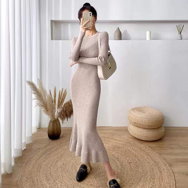 セーター マーメイドスカート ワンピース スリム レディース ニットワンピース ロング 秋冬 ベースレイヤー
