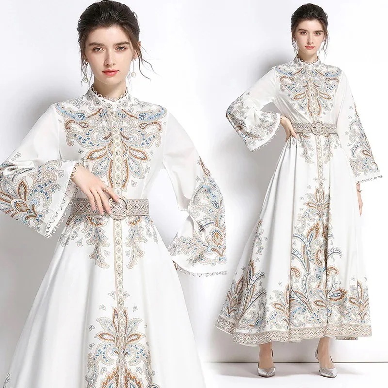 春夏 ヴィンテージ 花柄 Vネック 着痩せ ワンピース  ロングスカート 愛されドッキングワンピ