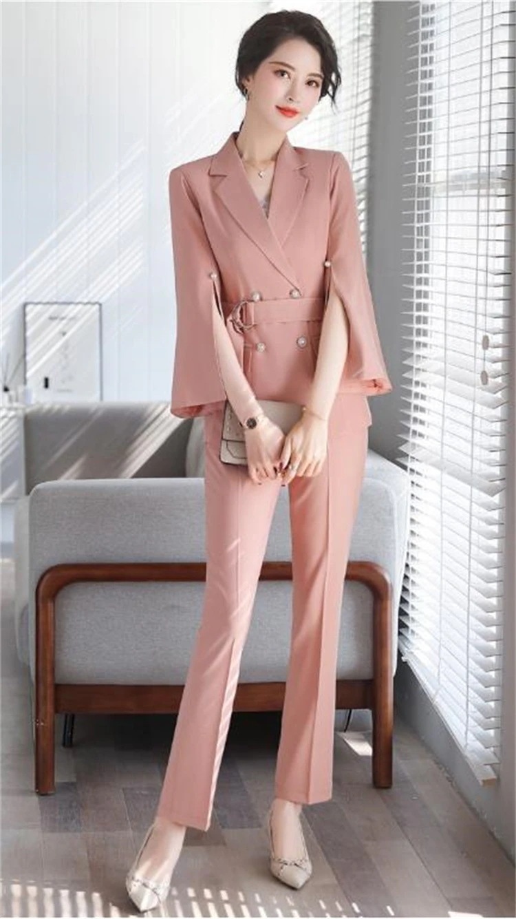 早い者勝ち 九分袖 スーツ 職業スーツ 新品 気質 修身 女性 ハーネス 3点セット ベルト レースアップ ロングパンツ 柔らかい