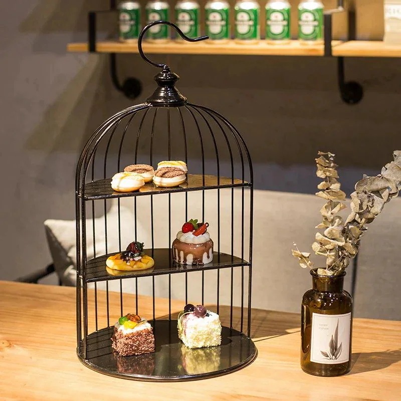 ヨーロピアンアフタヌーンティースナック棚錬鉄製ウェディングデザートテーブル鳥かごオーナメントカップケーキスタンド多層ウエストポイント