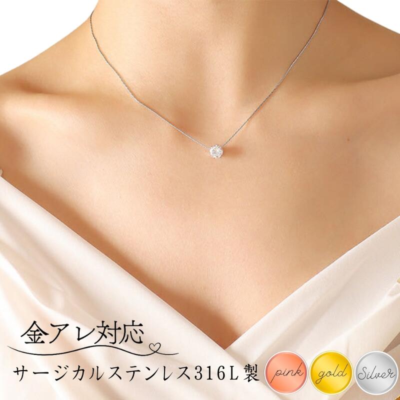 2025春 新作 人気 新品入荷 1粒 CZダイヤ( ジルコニア)六爪 シンプル 錆びない チェーン 0.5mm幅 極細 k18 ピンクゴールド ゴールド ステンレス ネックレス レディース 金属アレ