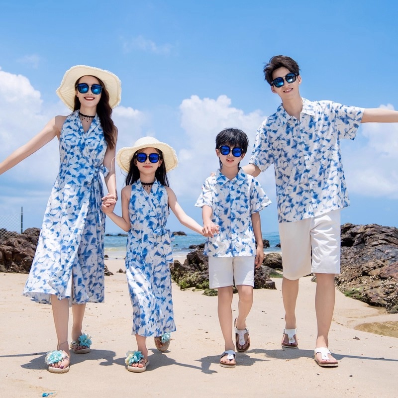 親子 アロハ おそろい 青 ペアルック 親子コーデ 韓国風 親子お揃い 上下セット 親子ペア ハワイ 旅行 水着 アロハシャツ ペアルック ワンピース Tシャツ 可愛い 夏 花柄 子供 パパ