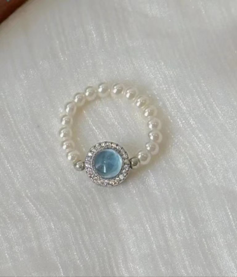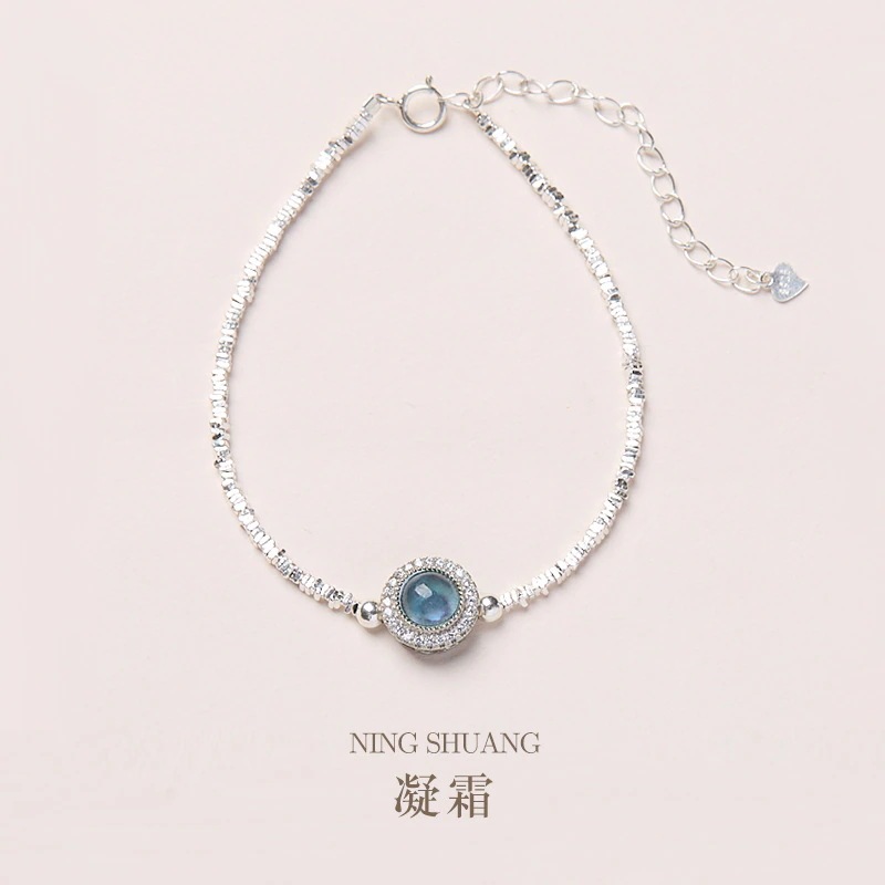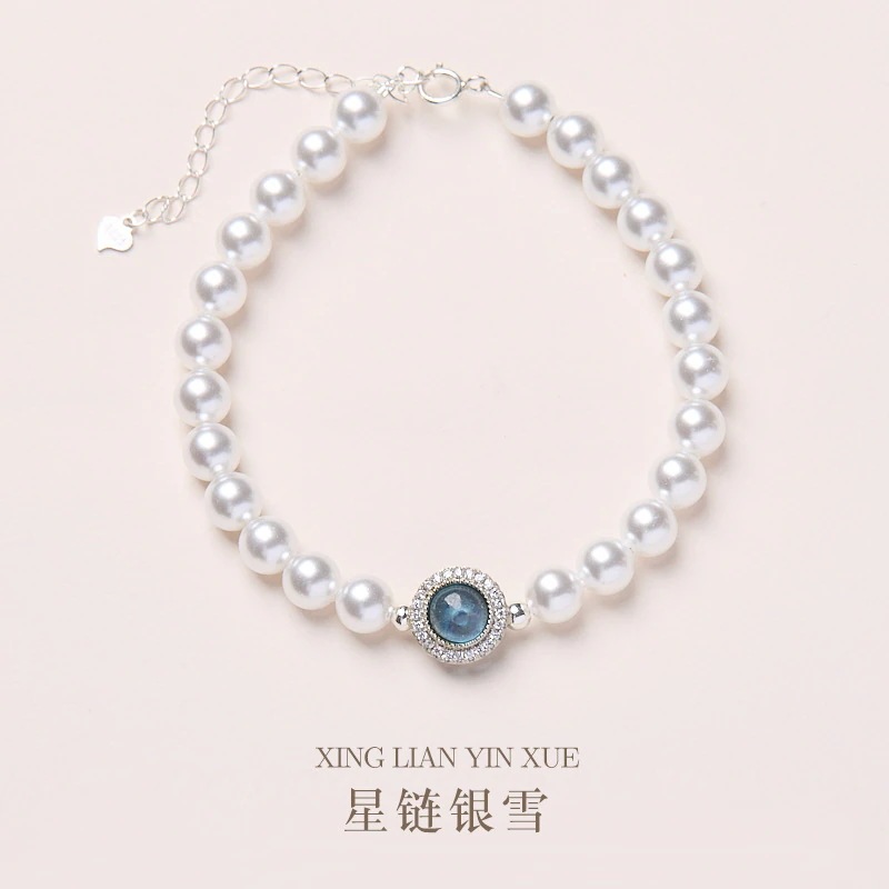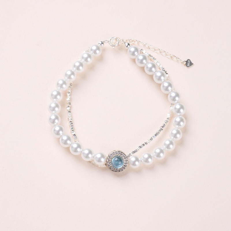 アクアマリン割れのシルバーパールブレスレット 贅沢な洗練されたハンドアクセサリー