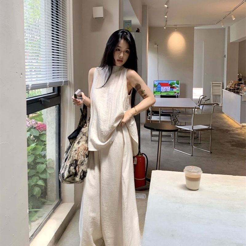 カジュアルスーツ 2025 夏 新作 ノースリーブ ベスト + ハイウエスト スカート パンツ ゆったり ツーピース