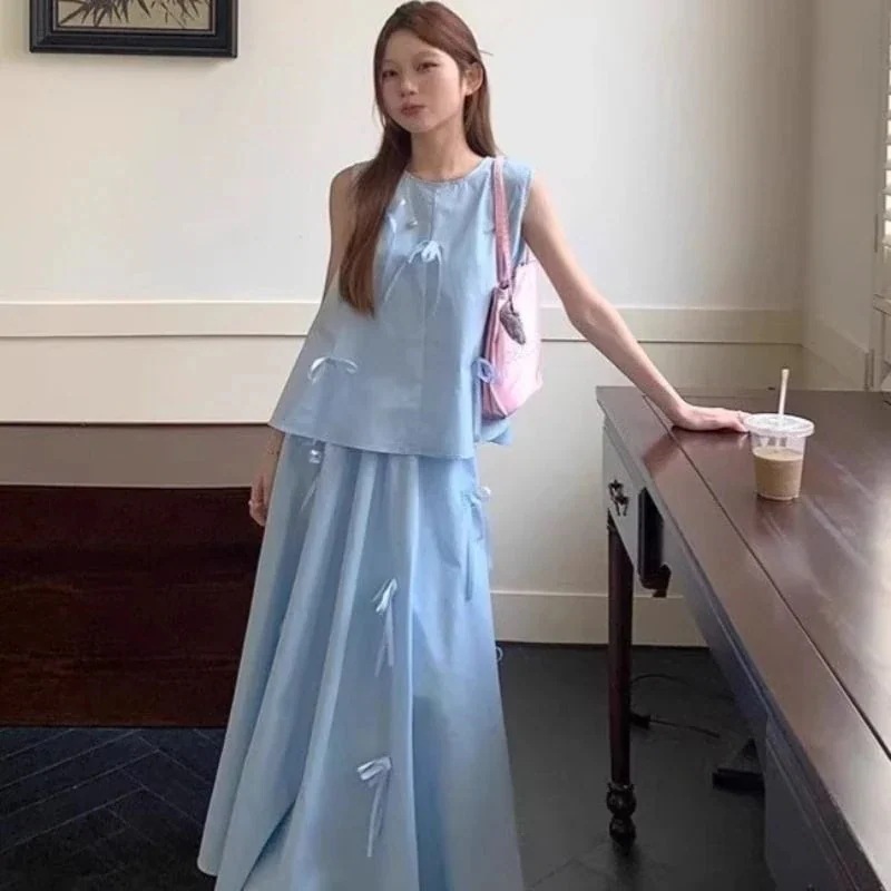 涼しく楽ちんセットアップ 2025新作カジュアルファッションセット女性夏ノースリーブブラウスロングスカート2点セット