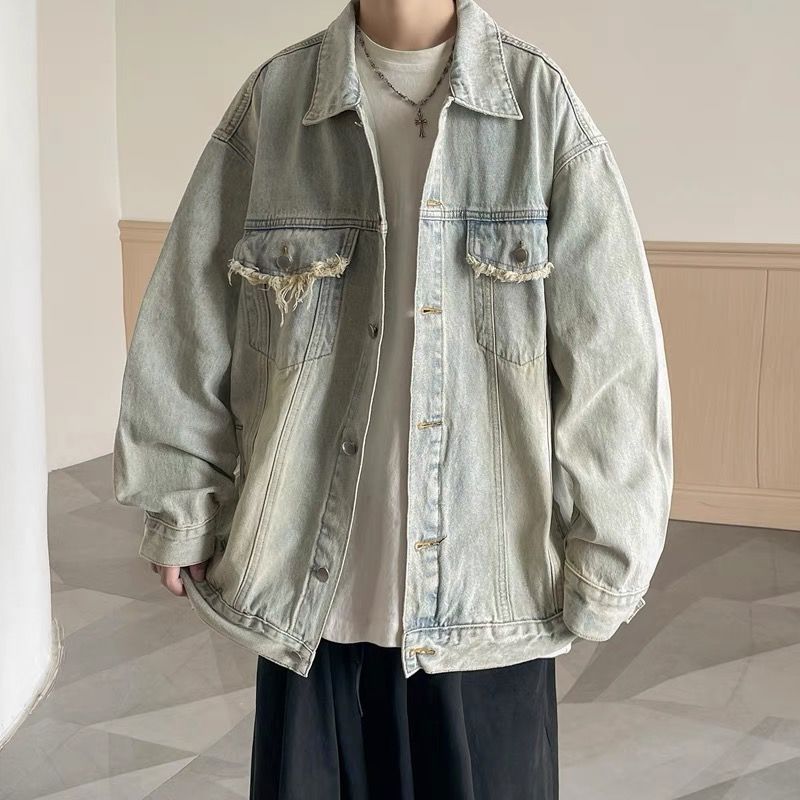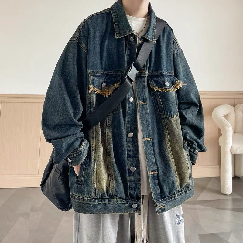 迅速出荷デニムジャケット ヴィンテージは古いデニムジャケットの男性ルーズ百カジュアルジャケットジャケットを行う