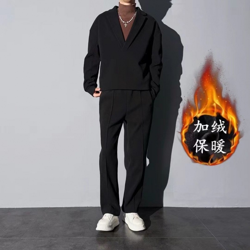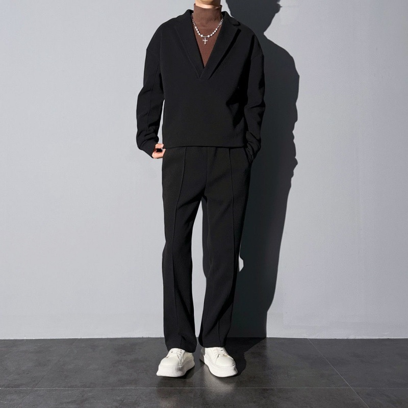 【人気メンズセット】メンズ 2025 秋冬新作 V ネック プルオーバー ウールブレンド スーツカラー カジュアル ルーズ 2 色 2 点セット