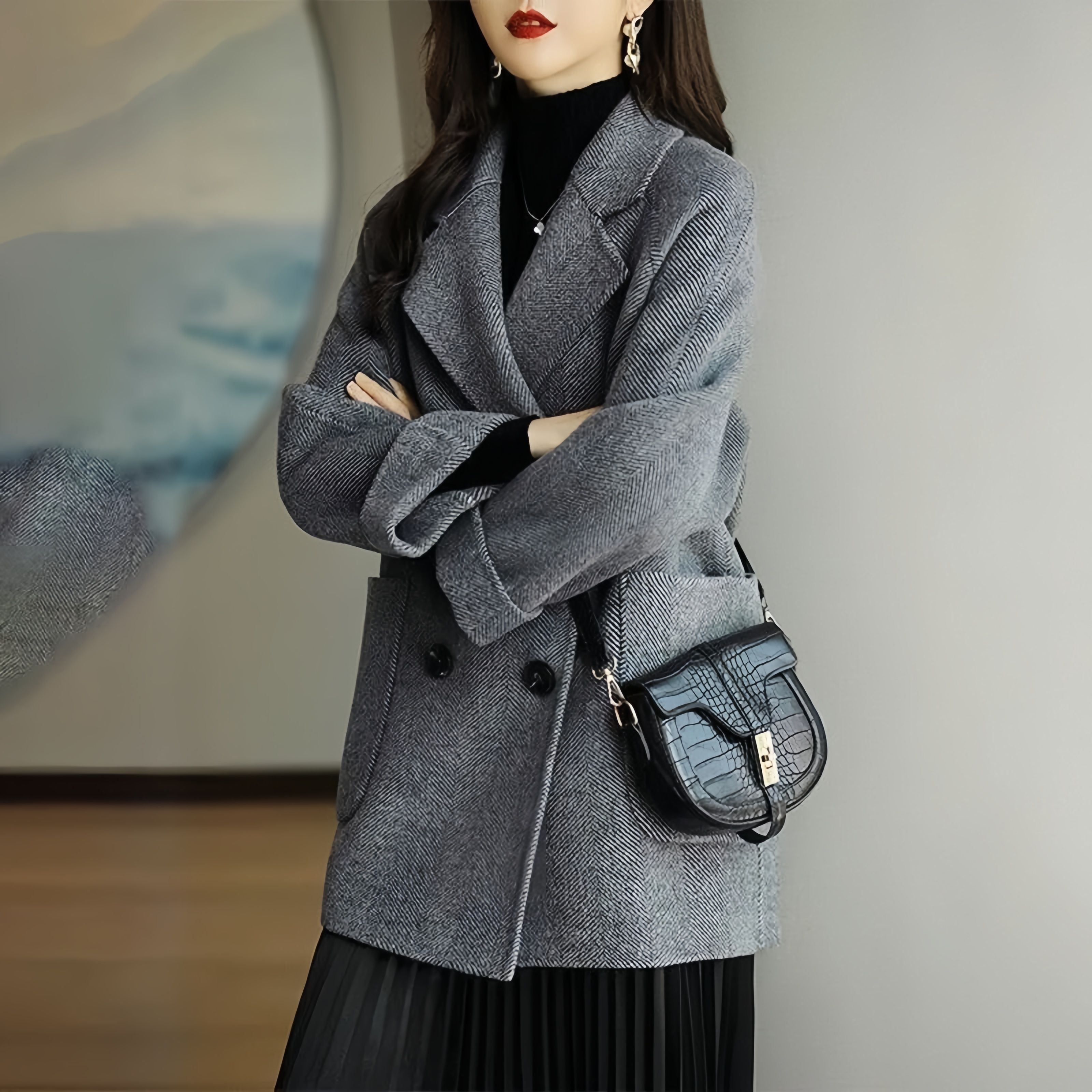 本日の限定商品2025秋冬新作モデル アウター 冬 上着 アウター コート ジャケット ジャケット コート レディース 韓国版 ファッション テンパメント・スーツ・カラー・コート ツイードロングコート