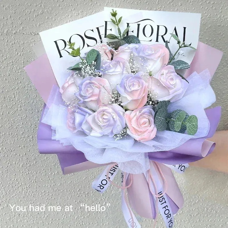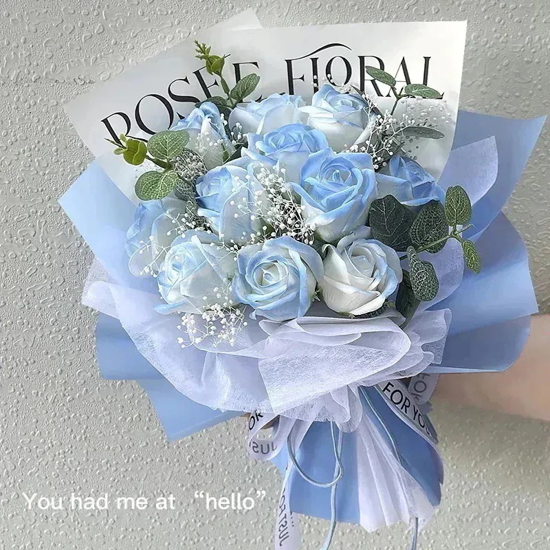 【】追加 砕いたアイス ブルー ソープ フラワー 完成したブーケ バラの花 ギフト バッグ バレンタインデー サプライズ ギフト ソープ フラワー ガールフレンドへ24