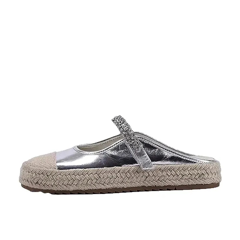夏の新型麻縄編みシルバー メアリージェーン靴軽やかでファッション ハーフスリッパzkw1157303551