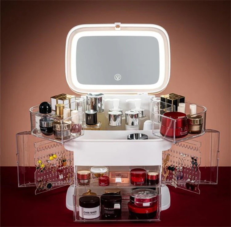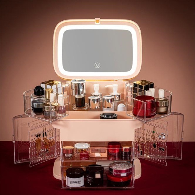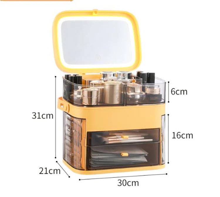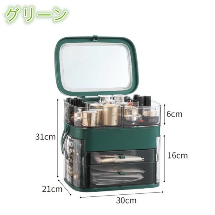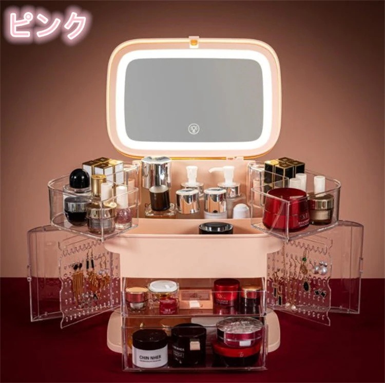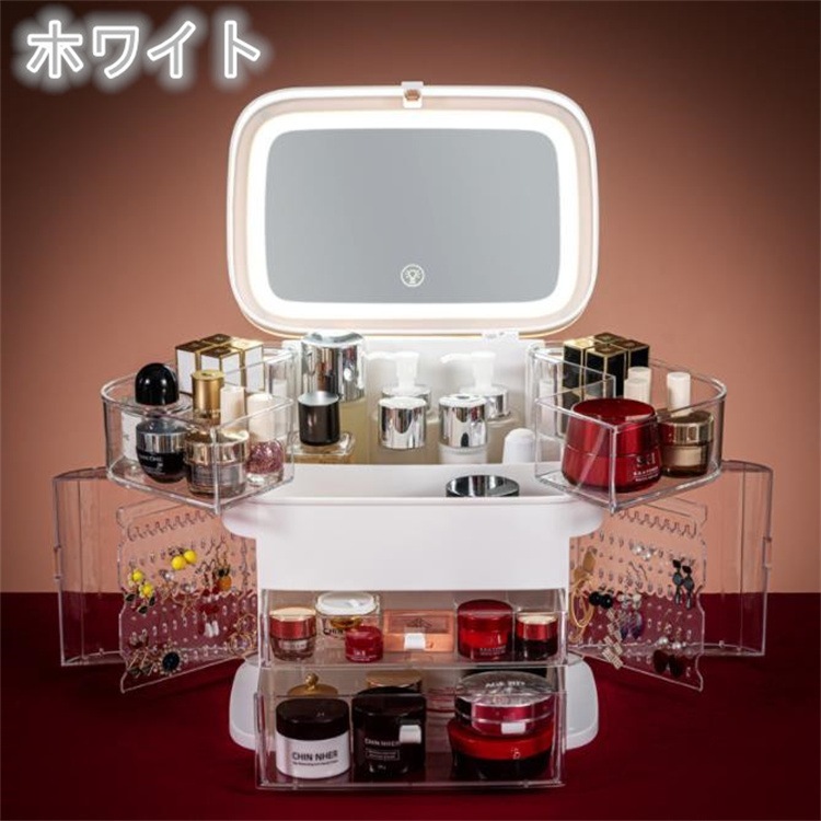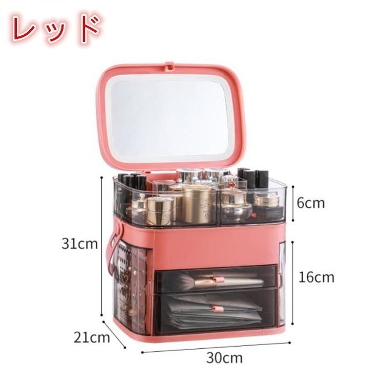 早い者勝ち 収納ケース 小物収納ボックス ジュエリー化粧品引き出し式 化粧品ボックス 省スペース 化粧品 防塵 大容量 スキンケア 化粧台 天板 led 鏡付き 棚