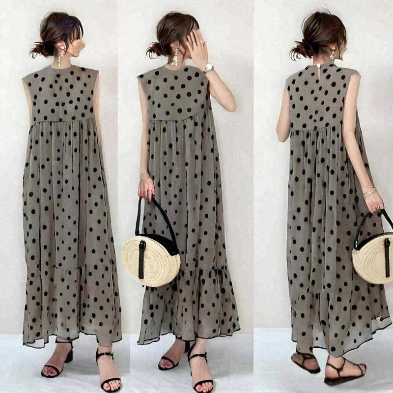 【本日限定】即納!2025新作 おしゃれ シンプル ワンピース ロングワンピース 百掛け 水玉模様 ノースリーブ ワンピース リゾートワンピース キャミワンピース