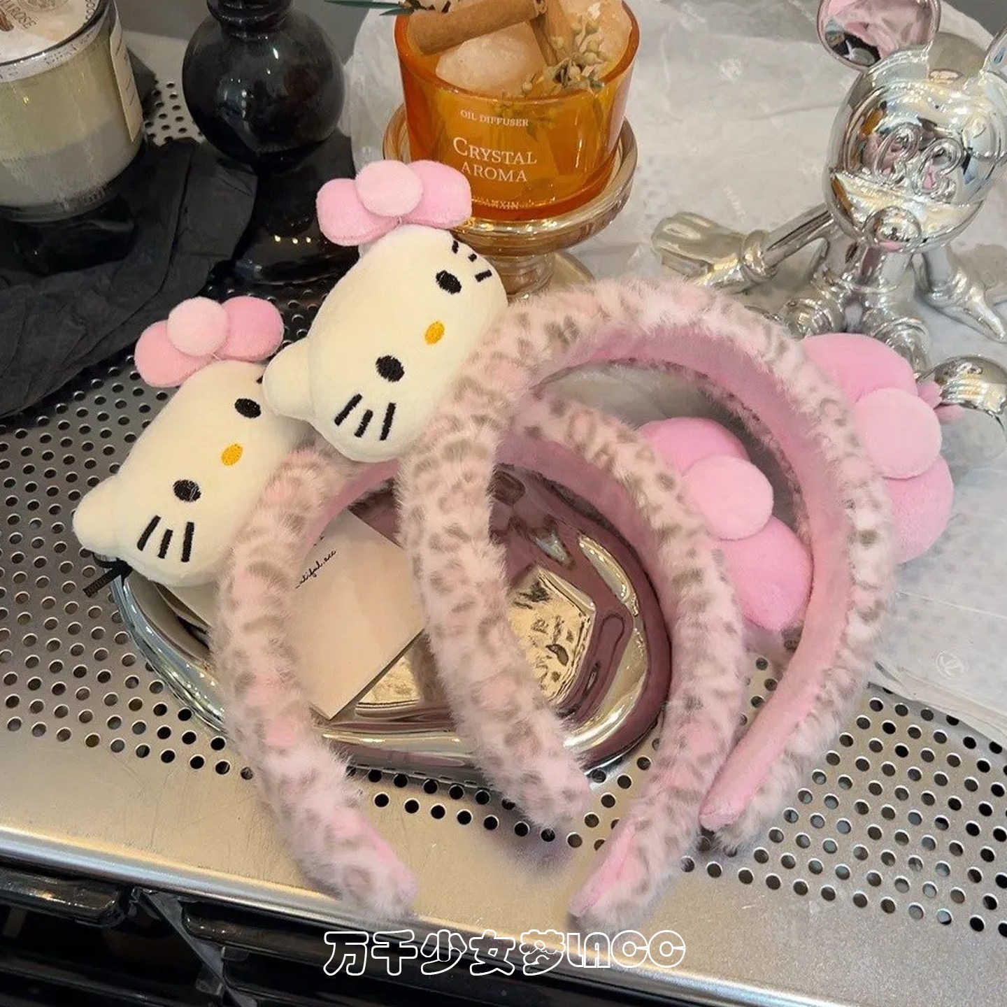 スーパーカートゥーン KT 猫 ヒョウ柄 ヘッドバンド ぬいぐるみ 洗顔メイク用ヘアピン 幅広エッジ ハイクラウン ヘッドウェア