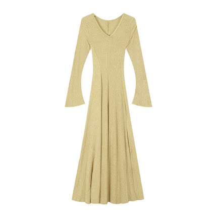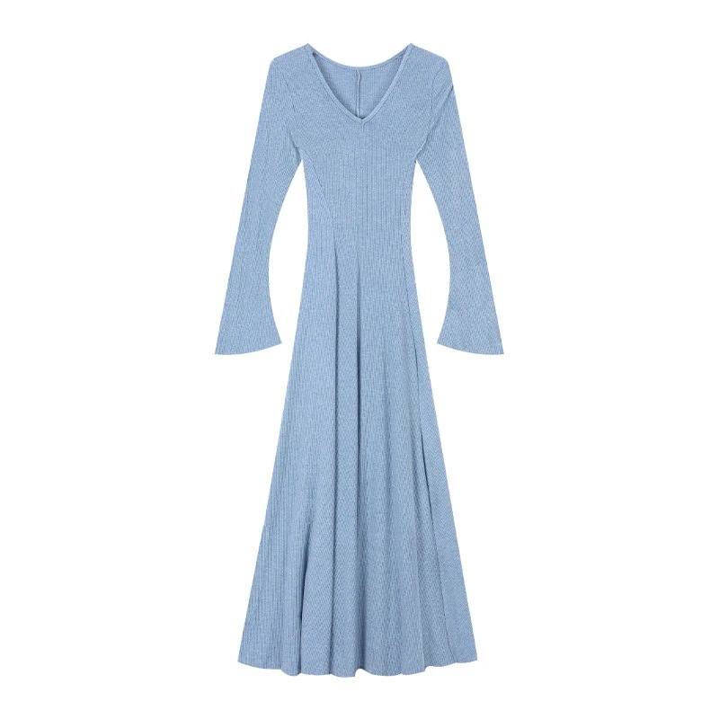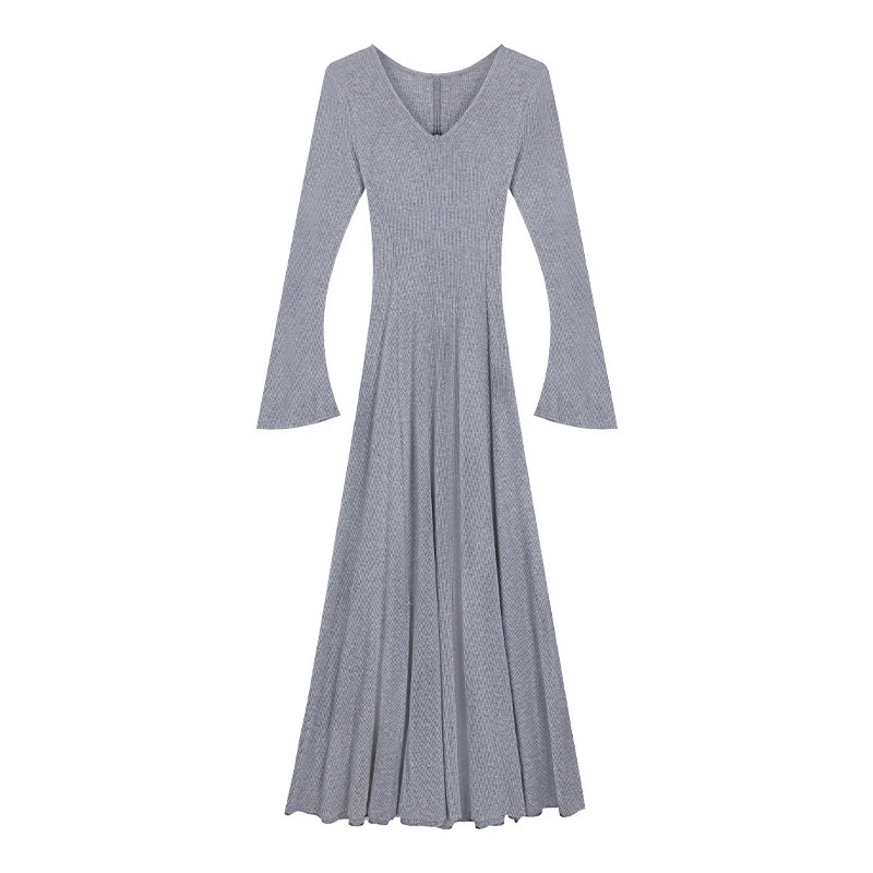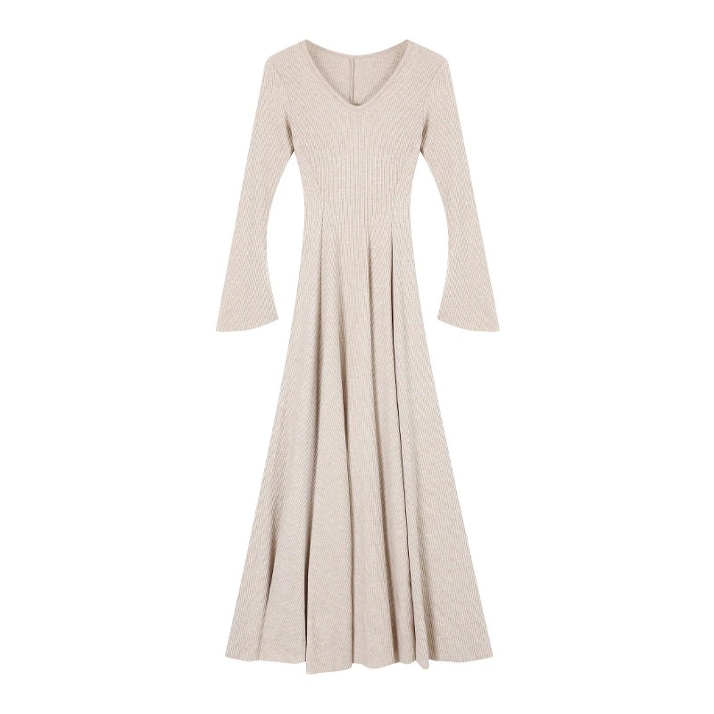 360度無敵の女神ライン ニットワンピース ロング 秋 冬 長袖 Vネック リブニット タイト Aライン フレア 着痩せ 細見え 2026 韓国系ファッションセクシーきれいめ 上品マキシ丈服