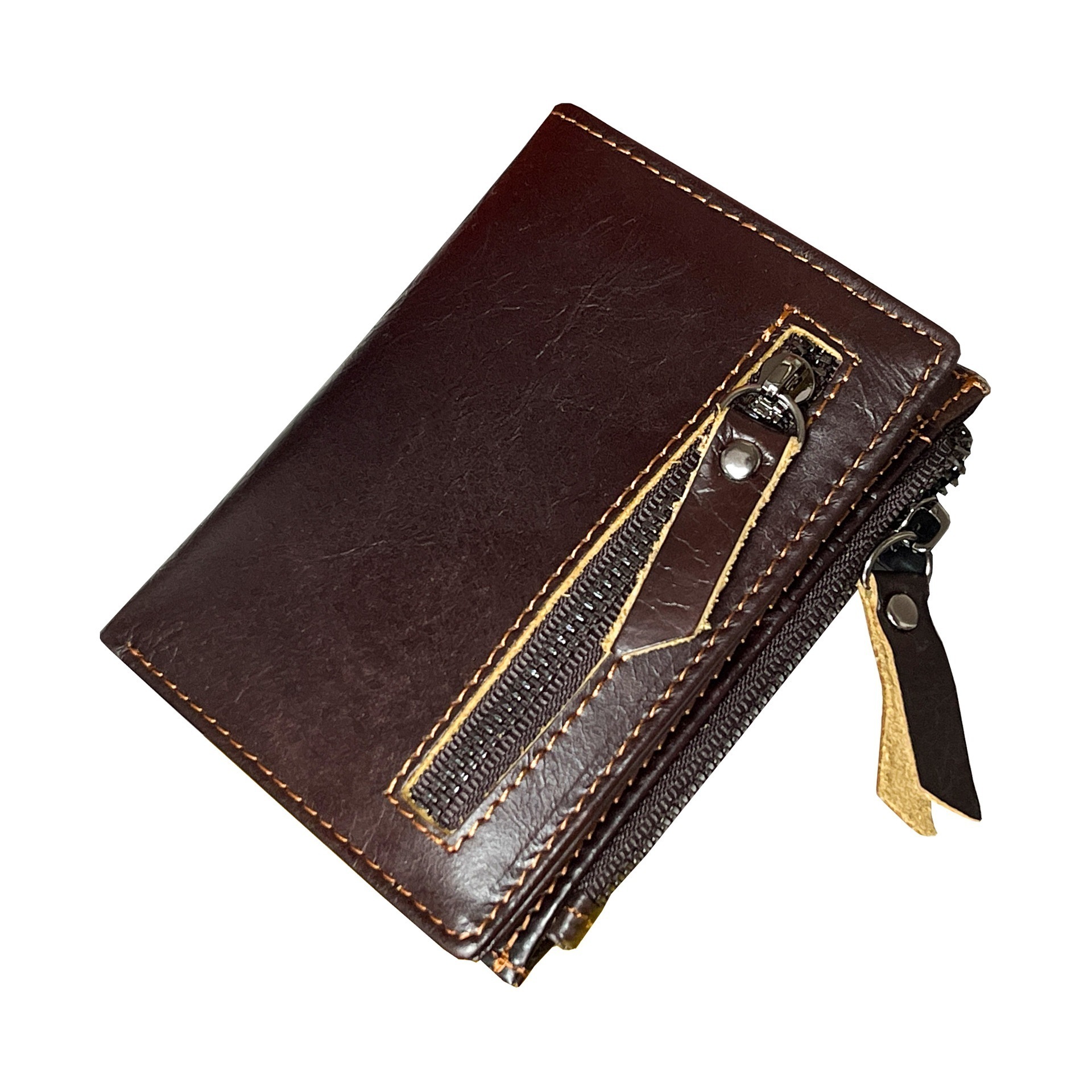 可愛いミニ財布 メンズ財布ジップ多機能ヴィンテージオイルワックスレザーウォレットショートマネークリップ