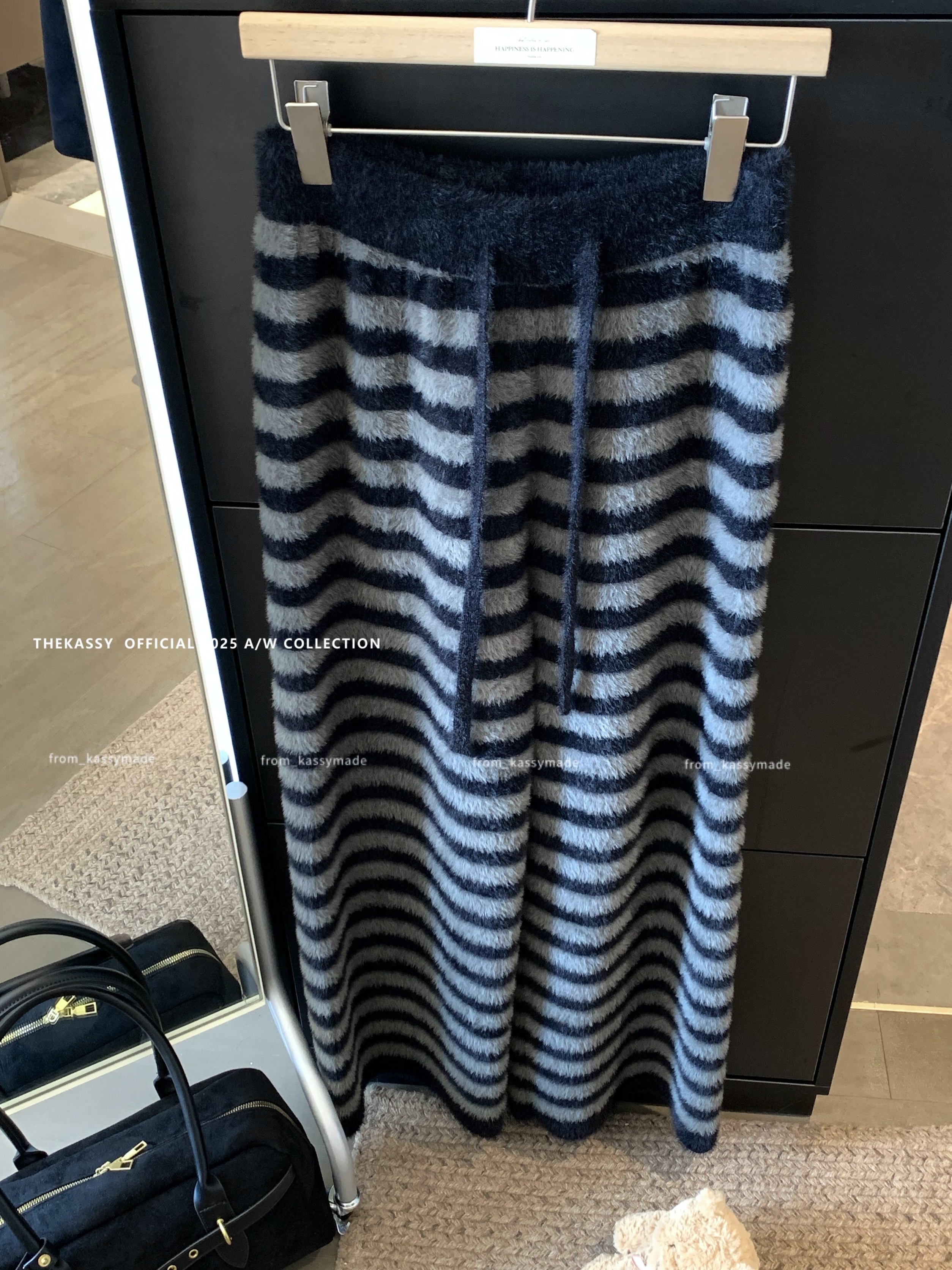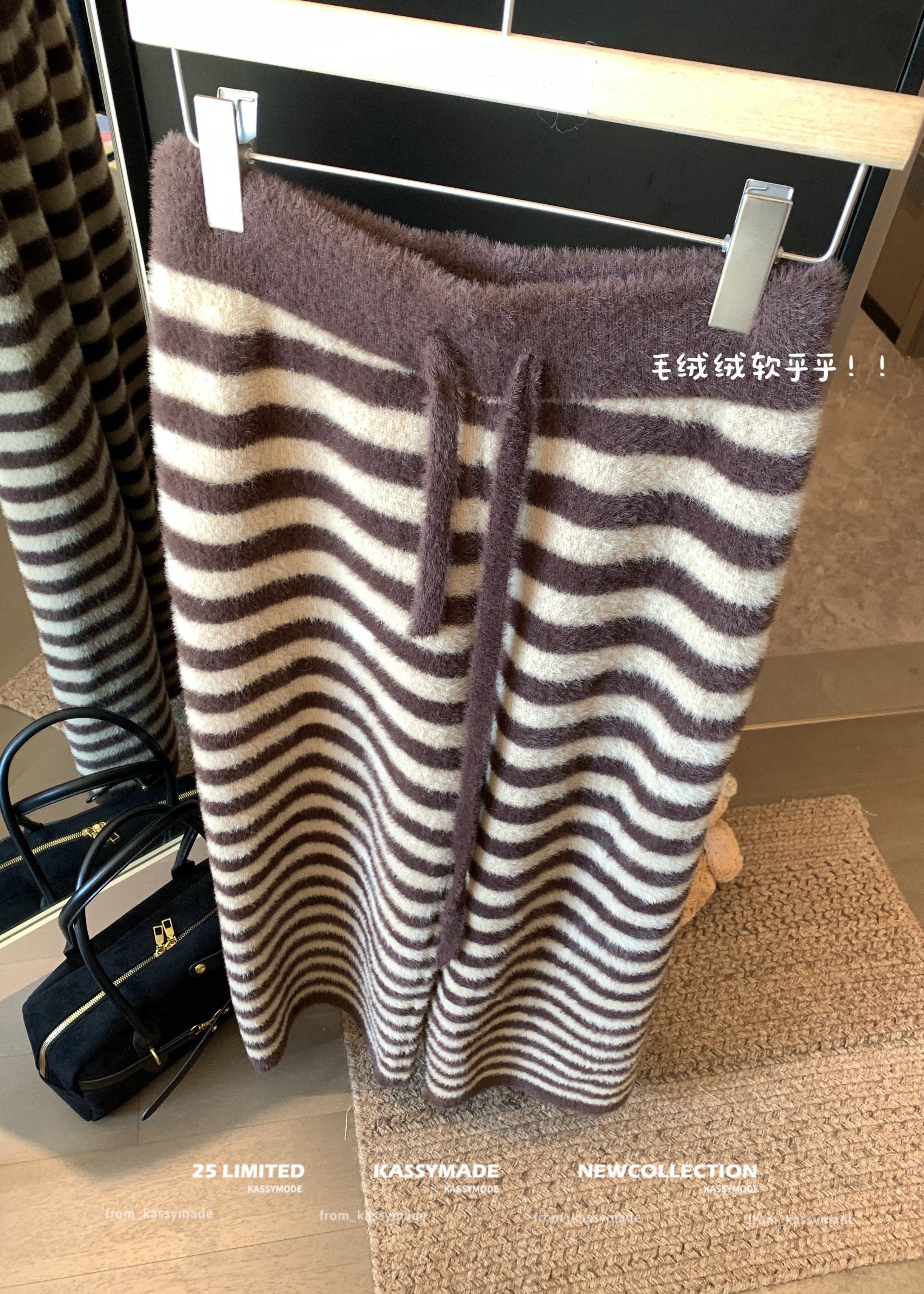 ニットパンツ レディース ワイドパンツ ボーダー柄 シャギー 2026 秋冬 ハイウエスト 暖かい もこもこ ふわふわ 極暖 ルームウェア 部屋着 韓国 ファッション ストリート カジュアル