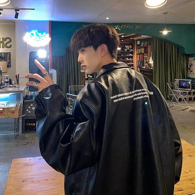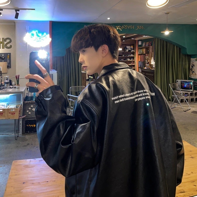 バイカーレザージャケットトップ潮puレザージャケットジャケットメンズ春のトレンドの緩い大きいサイズ
