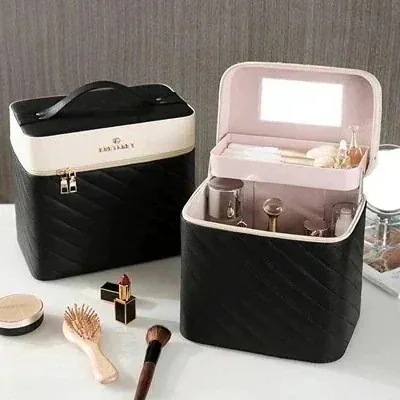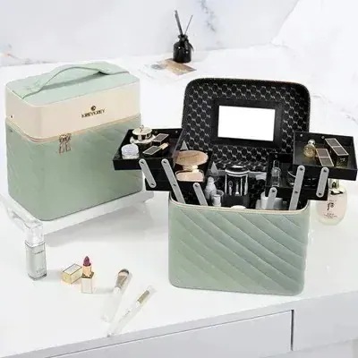 XJ メイクボックス 鏡付き 大容量 持ち運び 化粧ポーチ バニティ 機能的 かわいいkpop 福袋