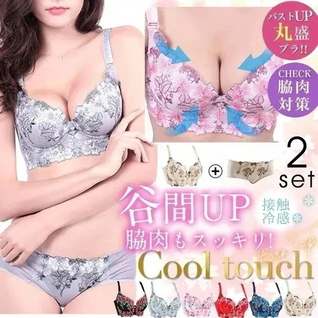 ブラジャー ショーツ セット 花柄 刺繍 レース ワイヤー入り 脇高 補正 バストアップ 大人 インkpop 福袋