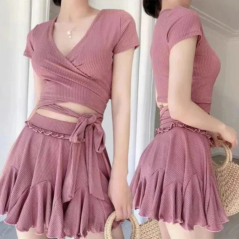 【 3日で出荷 】水着新作 夏用 かわいい 体型カバー 無地 ナチュラルテイスト 清涼感 レース セパレート水着 レディース 韓国系 スカート水着 ビキニ 水着