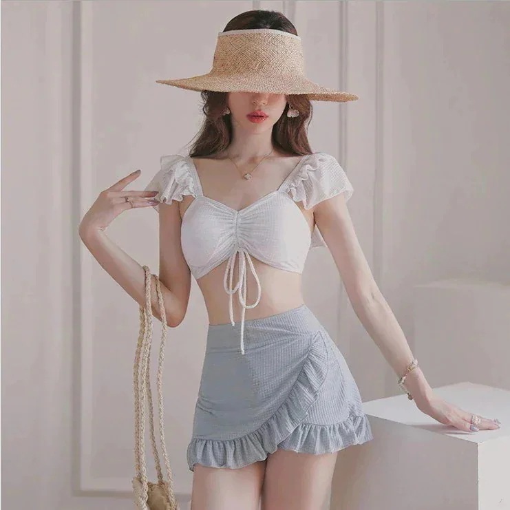 【 3日で出荷 】水着新作 夏用 かわいい 無地 体型カバー セパレート水着 レディース スクール水着 レディース リゾート水着 パフスリーブ 半袖