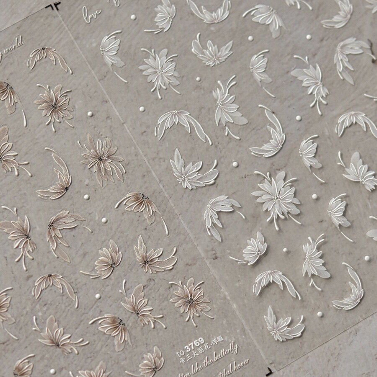 エレガントなインペリアルダリアネイルステッカー フレンチホワイトフラワークラスター 小さな新鮮な半透明の花の気質ネイルステッカー