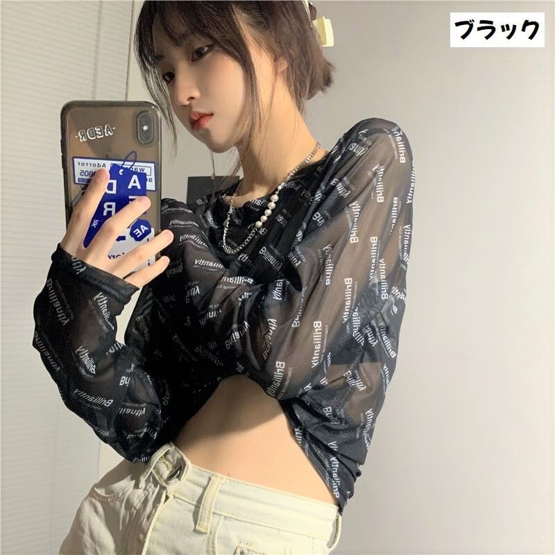 透けアイテム を楽しむ 透明感UP tシャツ ファッション 韓国 トップス デザイン カットソー イラストエンジェル 長袖 ロングプリント カジュアル 夏春 秋