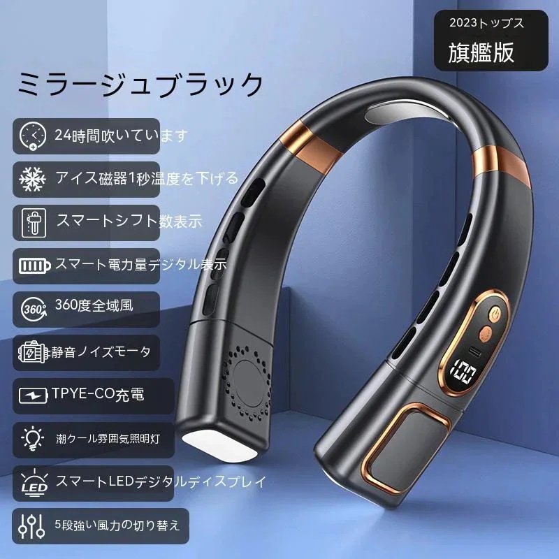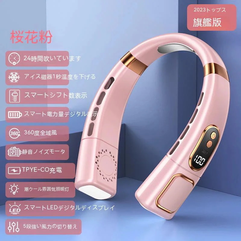 2023急速冷却ネックファン 首掛け扇風機 羽なしネックファン ネッククーラー Type-C充電式 5段風量階調節 携帯扇風機 大風量 熱中症対策 スポーツ 作業 アウトドア 山登り