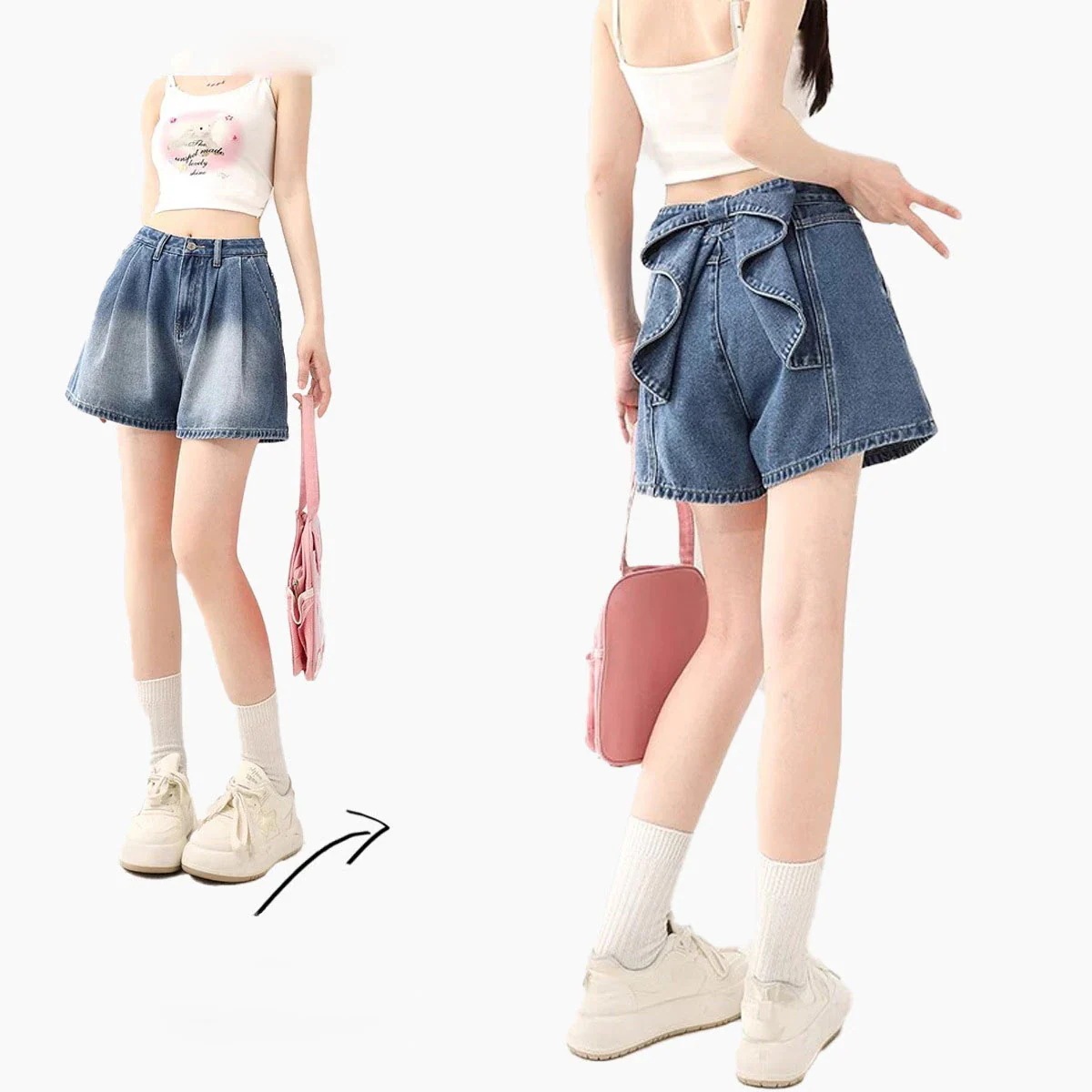 2025春夏 デニムパンツ ショート丈ボトムスハイウエストジーンズ K-POPストリートファッション系韓国風ファッション練習ジーンズ シルエット加工ゆったりレッグレディースカジュアルジーパン衣装