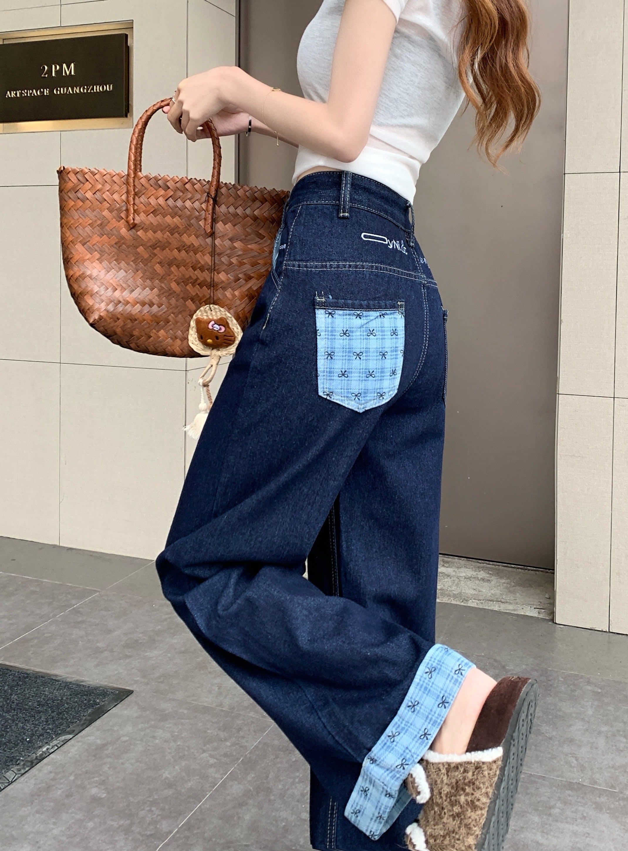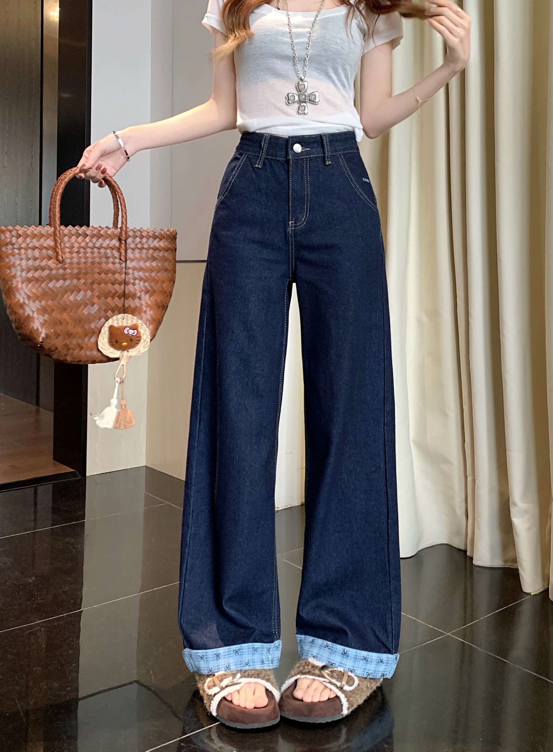 2025春夏 デニムパンツ ボトムス ハイウエスト ジーンズ K-POP ストリートファッション系モップ韓国風ファッション練習ジーンズ シルエット加工ゆったりレッグレディースカジュアル型サイズ衣装