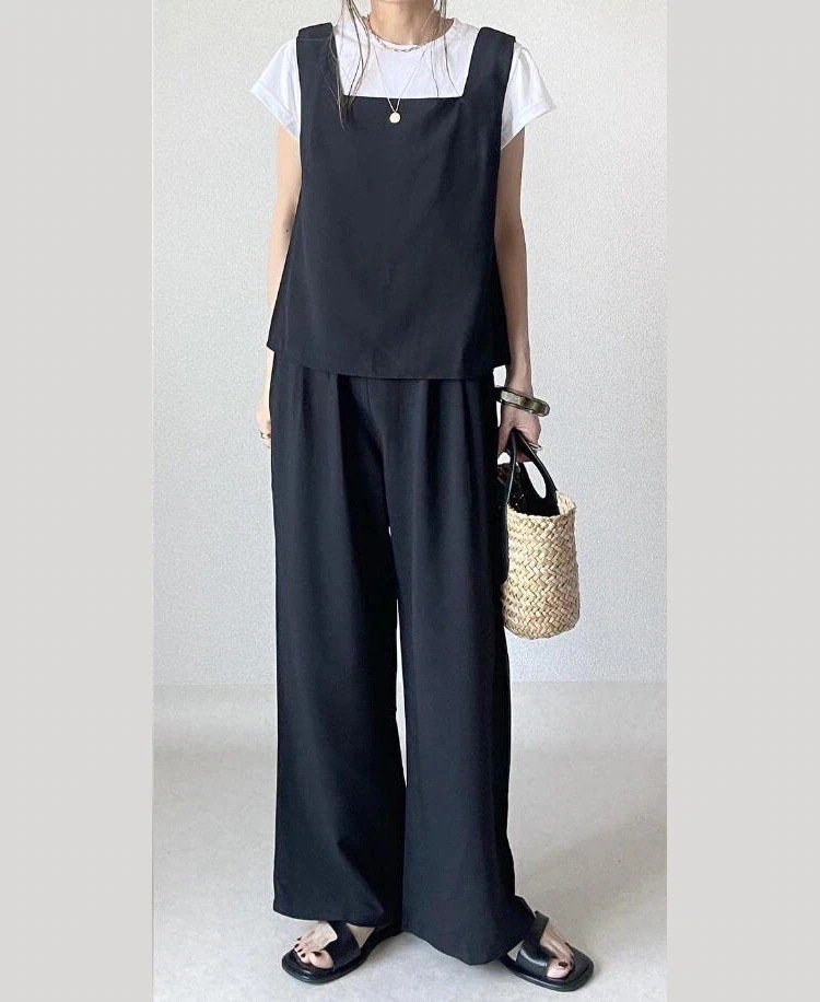 【上下2点セット】セットアップ レディース 夏新作 タンクトップ トップス +ハイウエストワイドパンツセットアップ