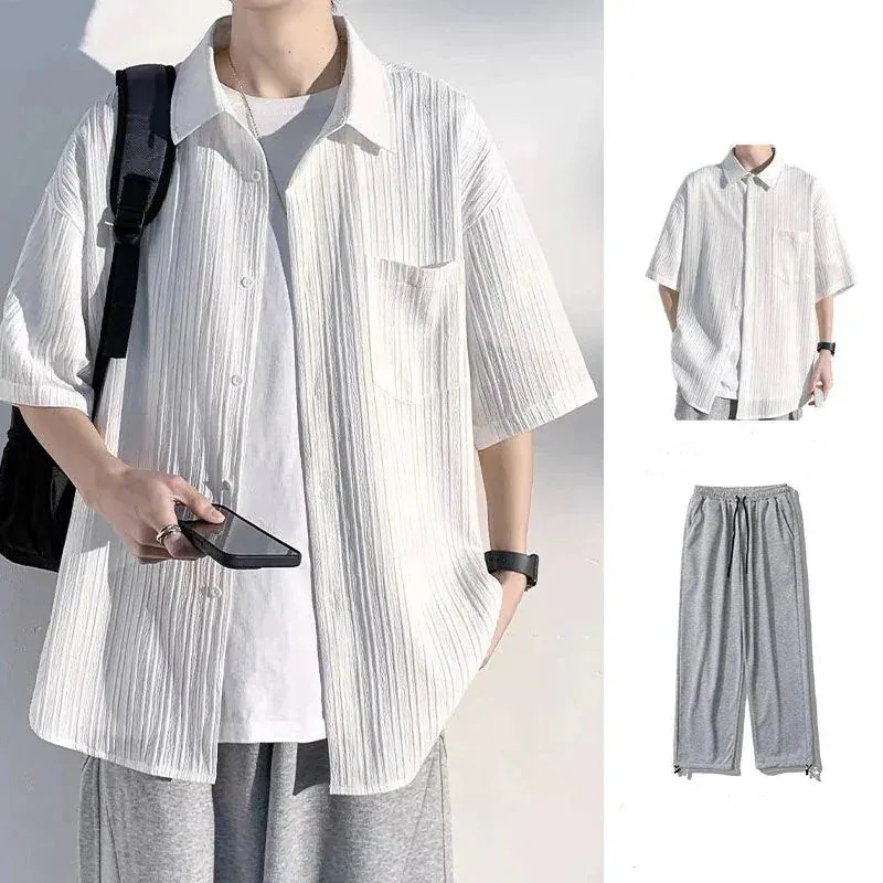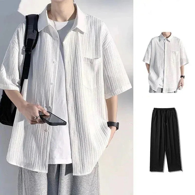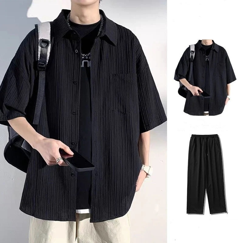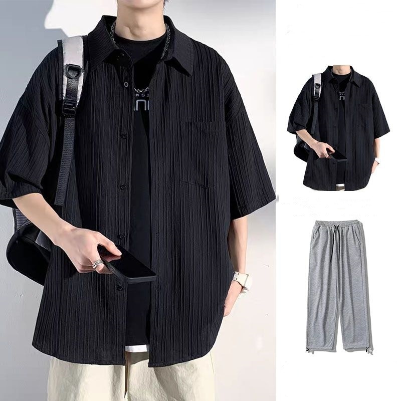 急速出荷サマー カジュアル 流行り 半袖 衬衫+ロングズボン シンプル かっこいい ファッション メンズ セット
