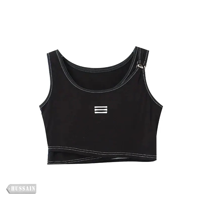 レイヤード風 タンクトップ トップス ノースリーブ ショート インナー ブラトップ ステッチ ロゴ カジュアル ストリート スポーティー スポーツミックス 重ね着風